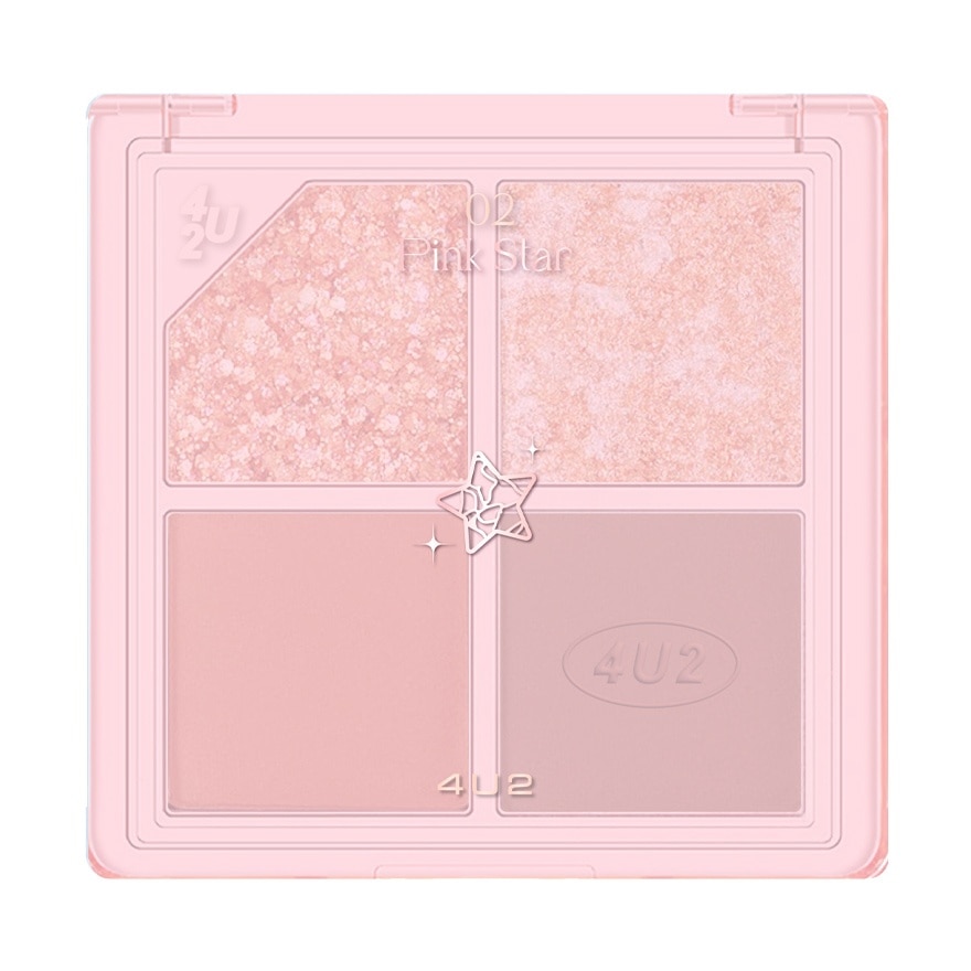 4U2 Jewelry Box 02 Pink Star Eyeshadow Quad Palette features a pigmented texture that is smooth and lightweight. The product does not clump is durable and allows the wearer to create more dimension to their eyes How to Use Apply directly onto the eyelid with fingers or an eyeshadow brush and blend out to your liking Care Safety Use only as directed. Do not ingest Do not use after the expiry date. If problems occur stop using the product and consult a physician 4U2 JEWELRY BOX 02 PINK STAR