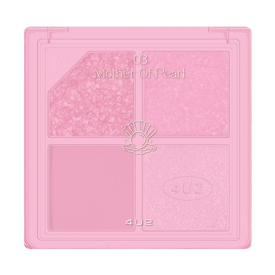 4U2 Jewelry Box 03 Mother Of Pearl EyeshadowQuad Palette features a pigmented texture that is smooth and lightweight The product does not clump is durable and allows the wearer to create more dimension to their eyes How toUse Apply directly onto the eyelid with fingers oran eyeshadow brush and blend out to your liking Care Safety Use only as directed. Do not ingest Do not use after the expiry date If problems occur stop using the product and consult a physician 4U2 JEWELRY BOX 03 MOTHER OF PEARL
