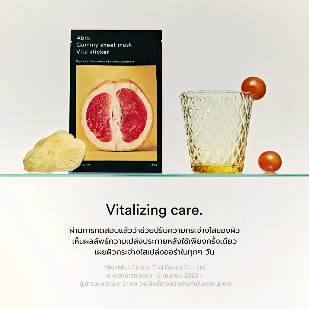Abib Gummy Sheet Mask Vita Sticker is a brightening sheet mask infused with rich vitamin complex and fruit extracts to restore radiance and vitality to dull, tired skin. The formula combines Niacinamide, Ascorbic Acid, and Vitamin E to help even skin tone and protect against environmental stress, while the gummy-textured cellulose sheet adheres perfectly for maximum absorption. Lightweight yet nourishing, it delivers deep hydration without stickiness. With continued use, skin looks visibly clearer, smoother, and more luminous glowing from within. Brightening sheet mask infused with Niacinamide, Vitamin C, and fruit extracts to energize dull skin. The gummy cellulose sheet adheres closely for full absorption, leaving skin clear, radiant, and deeply hydrated without stickiness.