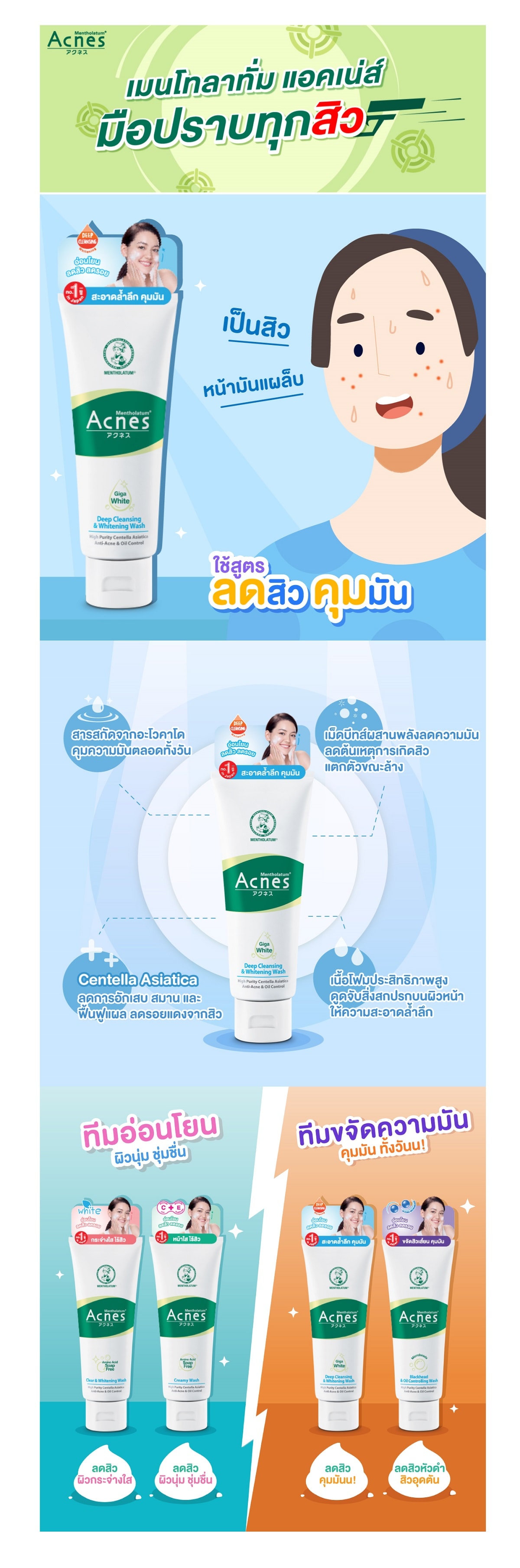 Mentholatum Acnes Deep Wash Cleanser Facial Cleanser Deep wash formula helps to remove and control oil as a cause of acne. - Deep cleanse pores with Amazonian white clay - Remove acne-causing bacteria with Salicylic Acid - Unclog pores, exfoliate and remove excessive sebum with Salicylic Acid - Lessen acne scars, soothing acne-prone skin with >95% pure Centella Asiatica (CICA) from Madagascar - Oil Control from Bixa Orellana extract - Protect skin after wash from pollution and PM 2.5 Pour an appropriate amount into wet palms, lather with water and massage gently. Rinse thoroughly with water. Use every morning and night.