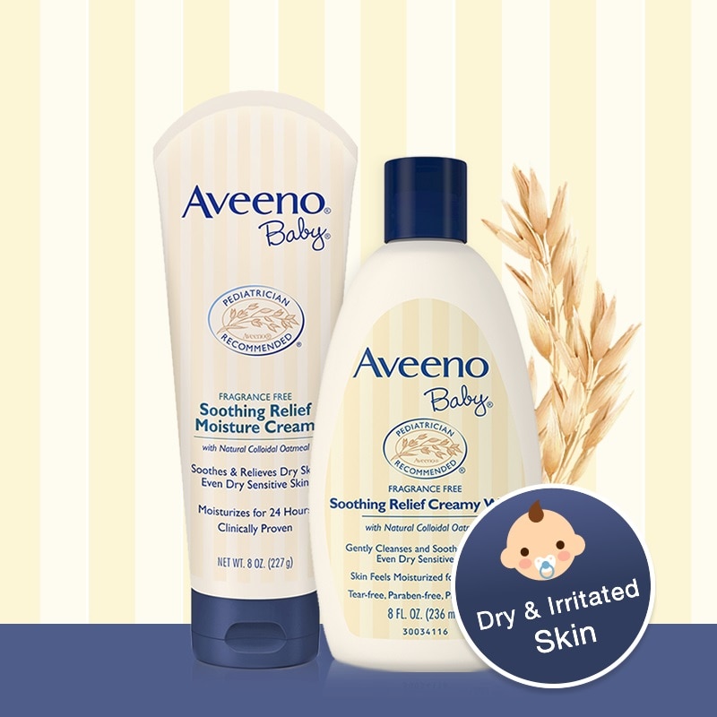 Aveeno Baby Soothing Relief Moisture Cream with natural colloidal oatmeal and rich emollients is shown to moisturize for 24 hours and soothe dry skin, even dry sensitive skin. No artificial fragrance added and even gentle for sensitive skin. AVEENO baby soothing relief moisture cream can be used everyday to keep your baby's skin moisturized and feeling healthy.