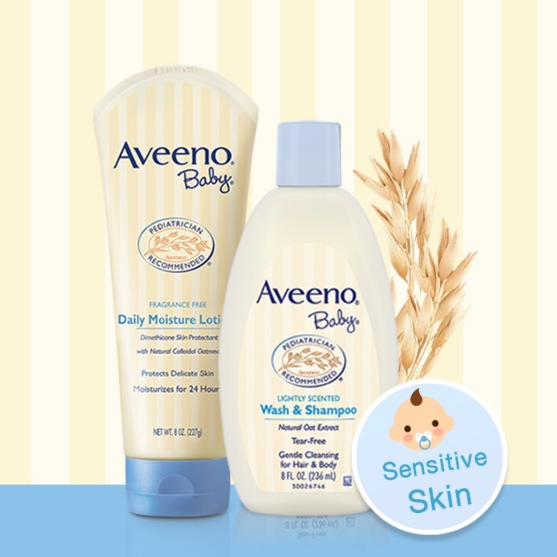 Aveeno Baby Daily Moisture Lotion contains natural colloidal oatmeal blended with rich emollients to soothe your baby's delicate, dry skin. The naturally nourishing, non-greasy formula absorbs quickly, moisturizes for a full 24 hours, and it contains no drying alcohols and won't clog pores. It is hypoallergenic and fragrance free, so ti won't irritate baby's sensitive skin. It's designed to be gentle enough for newborns. Fragrance-free, Paraben-free, Phthalate-free, Hypoallergenic, Steroid-free. AVEENO Baby Daily Moisture Lotion can be used every day to help keep your baby's skin soft, smooth and healthy. The AVEENO brand is Pediatrician recommended.