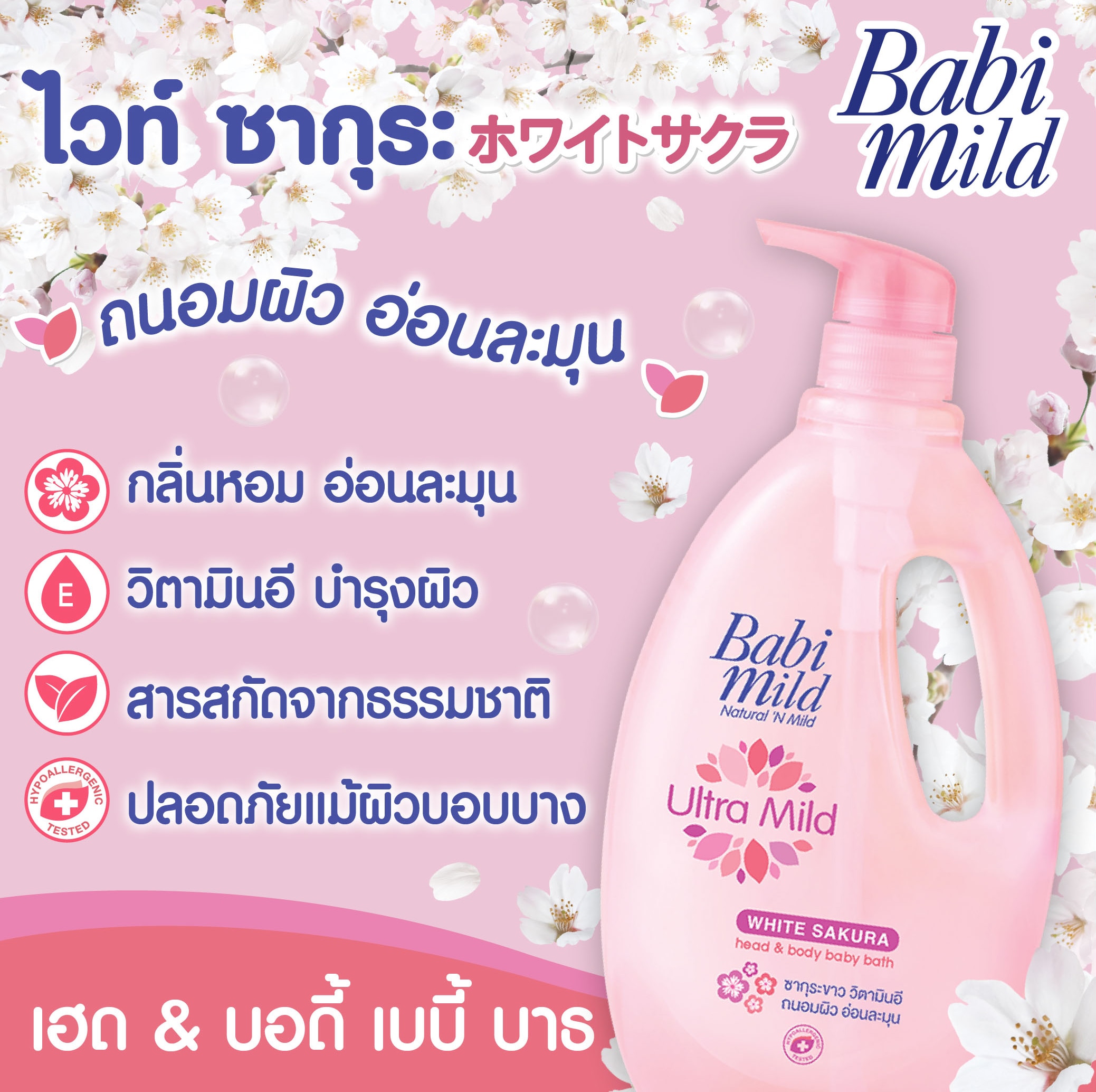 Babi Mild Organic Head Body Baby Bath White Sakura 800 Ml. อาบน้ำ สระผม เด็ก