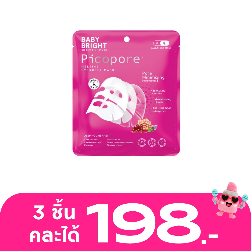 Pico Pore Melting Hydrogel Mask is a two-part hydrogel mask that helps restore and nourish the skin and pores, making them appear firmer and smoother. It contains Glycolic Acid, which helps exfoliate dead skin cells, leaving the skin brighter and smoother while tightening pores. Combined with Resveratrol and Rosemary Extract, it promotes skin hydration, making it look more radiant and glowing. It also includes Multi Ceramide and Ectoine, which enhance the skin's protective barrier, making the skin stronger and better at retaining moisture, resulting in soft, smooth skin and tighter pores. Additionally, the mask contains natural extracts such as Honey Extract and White Willow Bark Extract, which help reduce the appearance of wrinkles and dark spots, giving you a clearer complexion. You can wear this mask for up to 6 hours, revealing smooth, plump, and naturally healthy-looking skin.