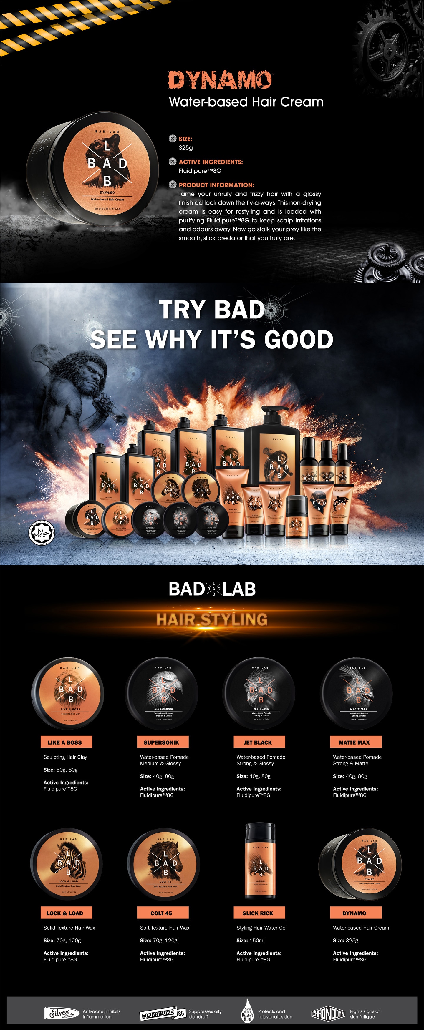 Control the unruliness in your hair and lock down the fly-a-ways. This non-drying cream is loaded with purifying FluidiPure™ 8G to keep scalp irritations and odours away. Now go stalk your prey like the smooth, slick and sexy predator that you truly are.Water-based formulation provide a glossy shine look without the greasy feeling. Easy to wash and rinse off.