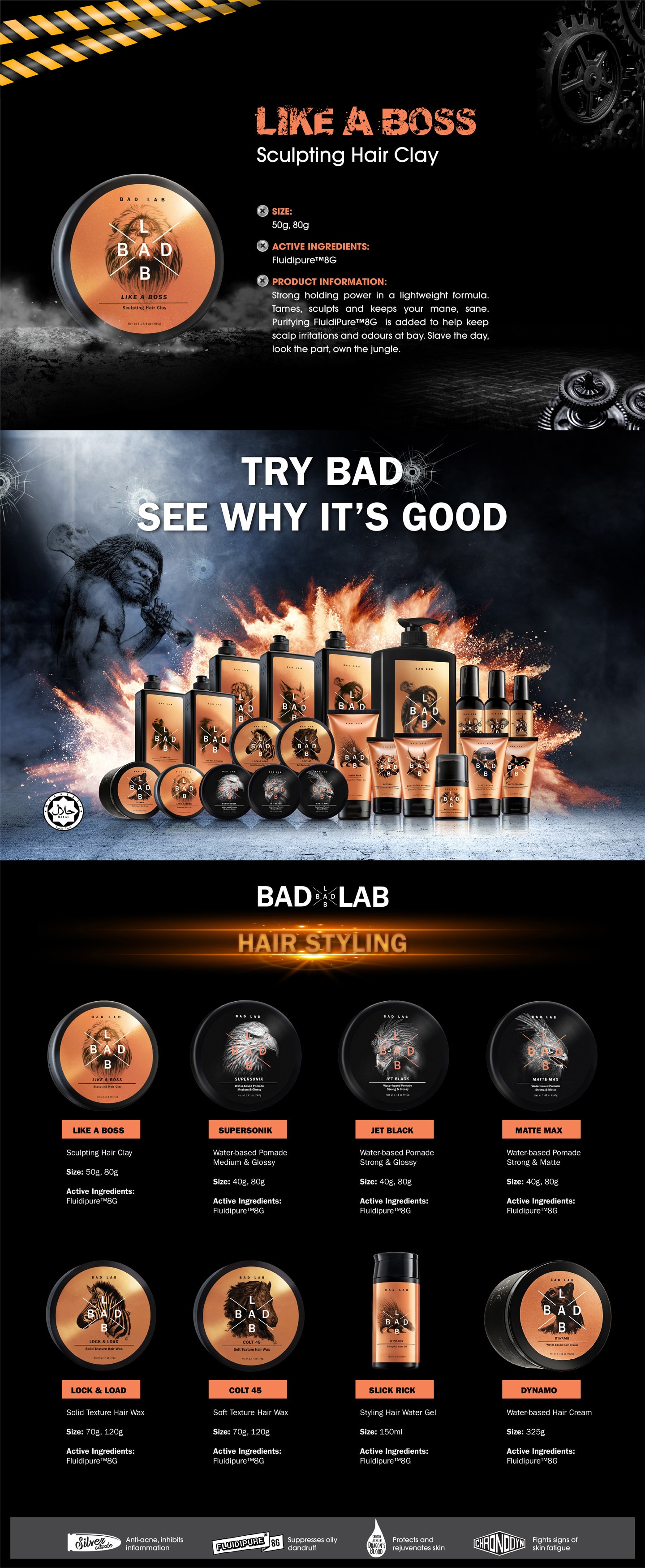 Strong holding power in a lightweight formula. Tames, sculpts and keeps your mane, sane. Purifying FluidiPure™8G is added to help keep scalp irritations and odours at bay. Slave the day, look the part, own the jungleใCreates great hold and control, allowing you to sculpt you hair in any style you desire. Leaves no sticky residue that weighs hair down.