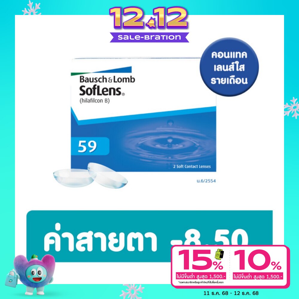 The Bausch and Lomb SofLens59(Hilafilcon B) Visibility Tinted Contact Lens is a soft hydrophilic contact lens which is available as a spherical lens. The lens is made from the hilafilcon B material, a hydrophilic copolymer of 2 hydroxyethyl methacrylate and N-vinyl pyrrolidone, and is 59 water by weight when immersed in a sterile saline solution. The lens is tinted blue เลขที่ใบอนุญาตโฆษณา : ฆพ. 544/2566