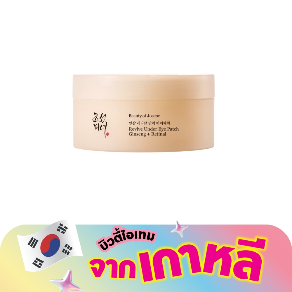 Beauty of Joseon Revive Under Eye Patch Ginseng + Retinal. A rejuvenating hydrogel eye patch infused with ginseng water, retinal, and pearl glow to visibly firm, under-eye clarity Improvement, and smooth wrinkles, puffiness, and dark circles. Clinically Proven Under-Eye Care - Visibly improves wrinkles, fine lines, and dullness in just two weeks. Deep Hydration and Firm Grip - Delivers hydration on contact with a wing-shaped design that hugs the skin comfortably. Multi-Targeted Firming Care - Addresses multiple concerns fine lines, dark circles, puffiness, and loss of elasticity. Can also be used on smile lines, forehead, and neck for firming care.