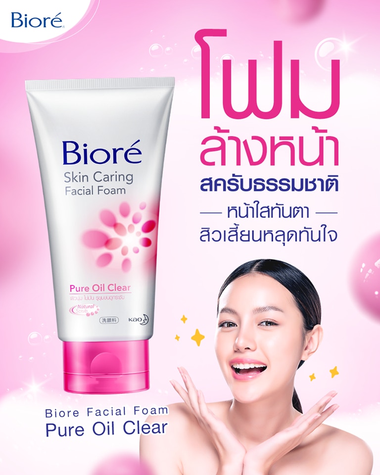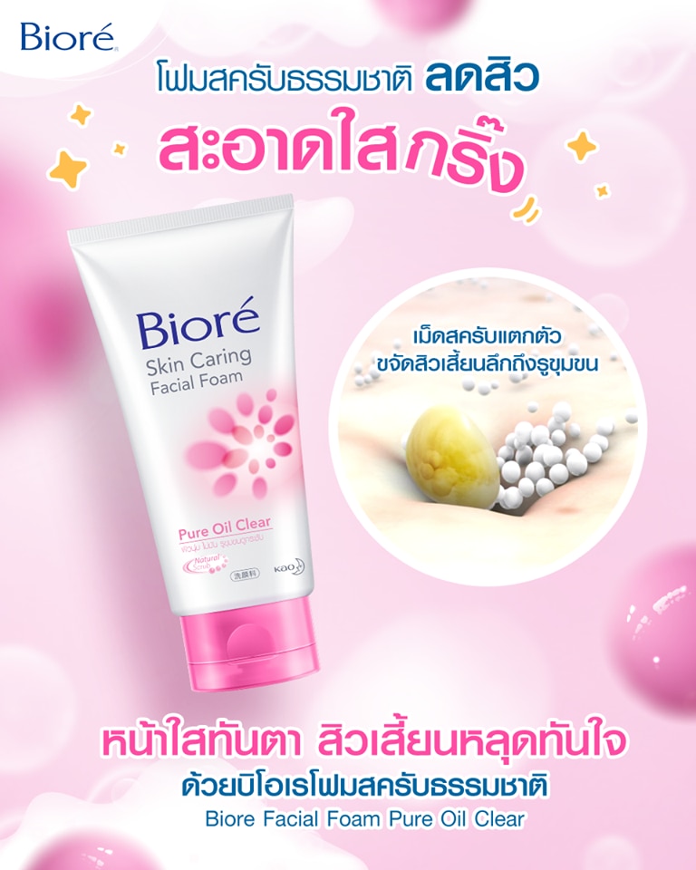 Biore Pure oil clear foam Deeply cleanse oiliness& clogged dirt gently with breakable micro scrub. For smooth and clear bright skin look