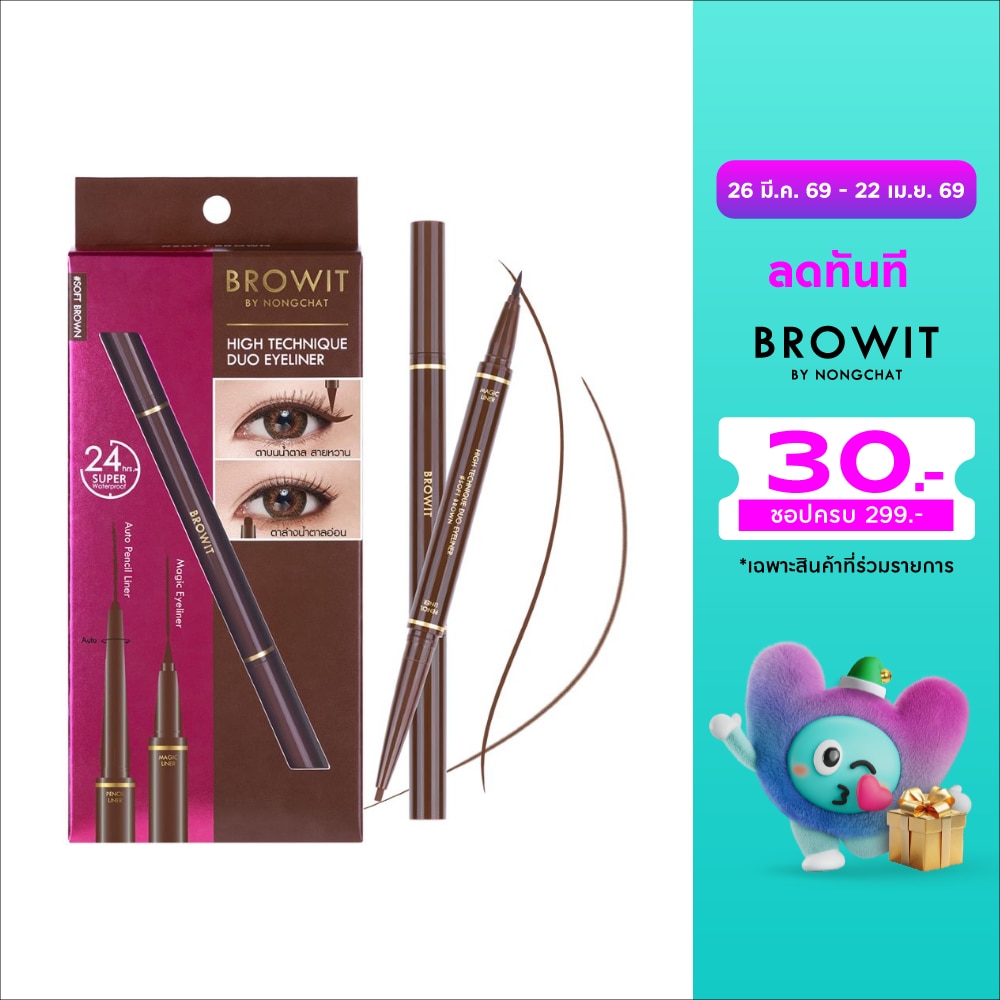 1 Use the brush side to draw a line on the eyelid closest to the eyelash to achieve sharp eye look 2 Add dimensions to the eyes for a rounder look by using the brown color on the lower water line