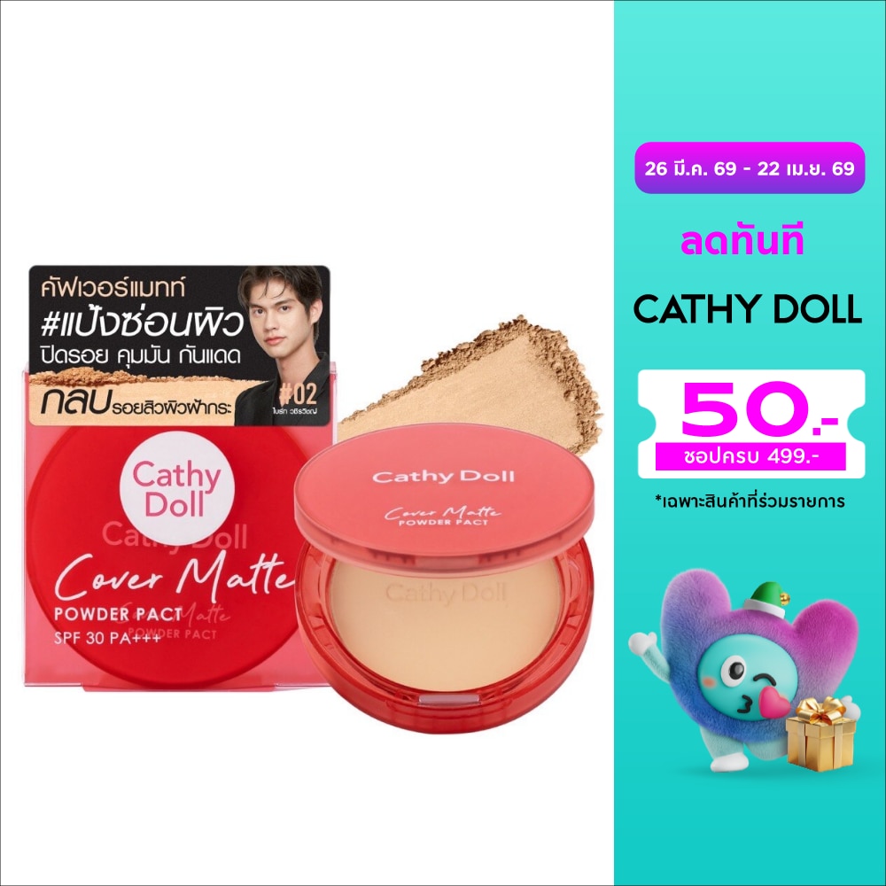 Cathy Doll Cover Matte Powder Pact SPF30 PA+++ 4.5g. 02 Light Beige