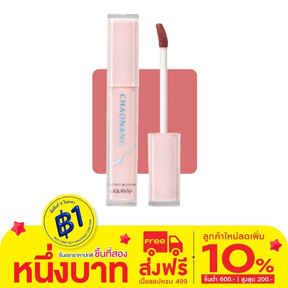 Chaonang Glowy Bloom Liquid Lip Net weight 2.5 g. This glossy lipstick provides a sparkling shine. The product is lightweight, non-sticky, and provides premium quality. Say goodbye to dry, dull lips. It moisturizes and reduces dryness, preventing chapped lips. Can be reapplied whenever needed without feeling thick or heavy on the lips. Provides full, beautiful color. Lightweight texture, comfortable on the lips, easy to spread, long-lasting. There are 6 shades that have been selected to suit all skin tones. 01 Rosie Candy 02 Peony Pink 03 Caramel Rose 04 Honey Nude 05 Cherry Crush 06 Peony Glow