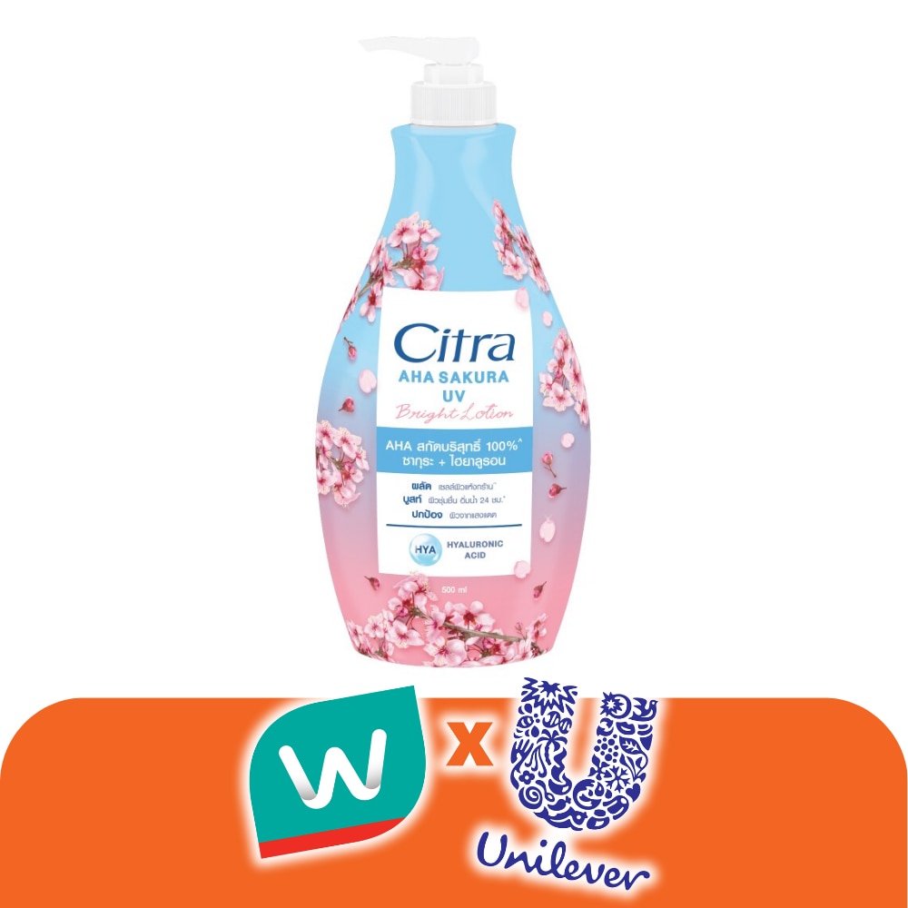 Citra AHA Sakura UV Bright Lotion 500 Ml. โลชั่น ผิวชุ่มชื่น กู้ผิวหยาบกร้าน