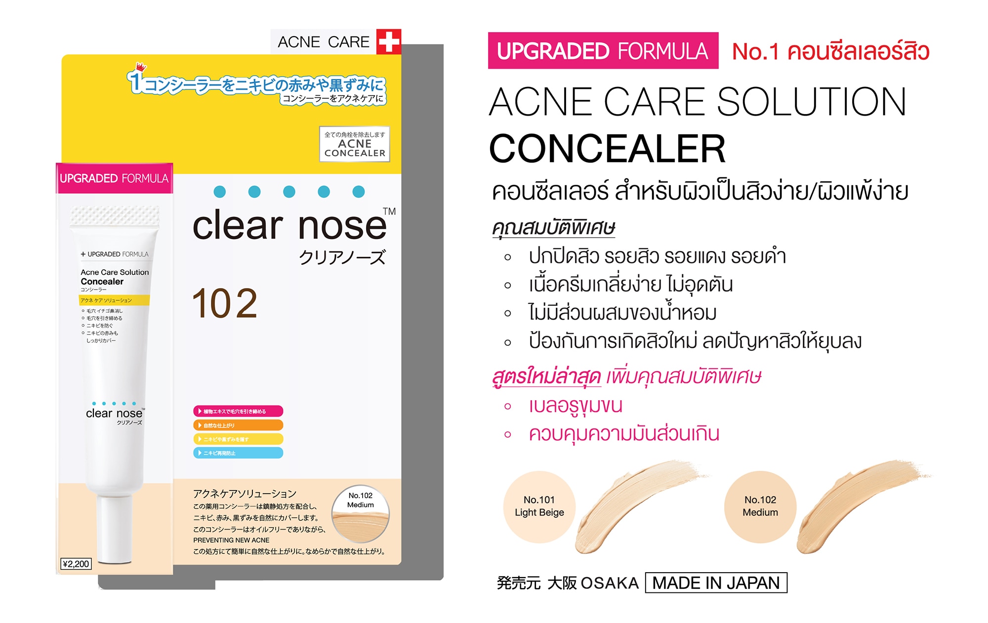 Clear Nose Acne Care Solution Concealer is suitable for acne-prone skin. This medicated concealer contains a gentle formula. It is natural coverage for acne, blackhead and redness. It is oil-free concealer. The soft texture of Clear Nose Acne Concealer can give a poreless natural-looking skin. It is enriched with natural ingredients to reduce acne, Japanese Aloe Vera and Soybean seed extract. The revolution from Osaka (Made in Japan) SiClear technology by Soy Isoflavone to quickly reduce the appearance of blemishes for clear-looking skin