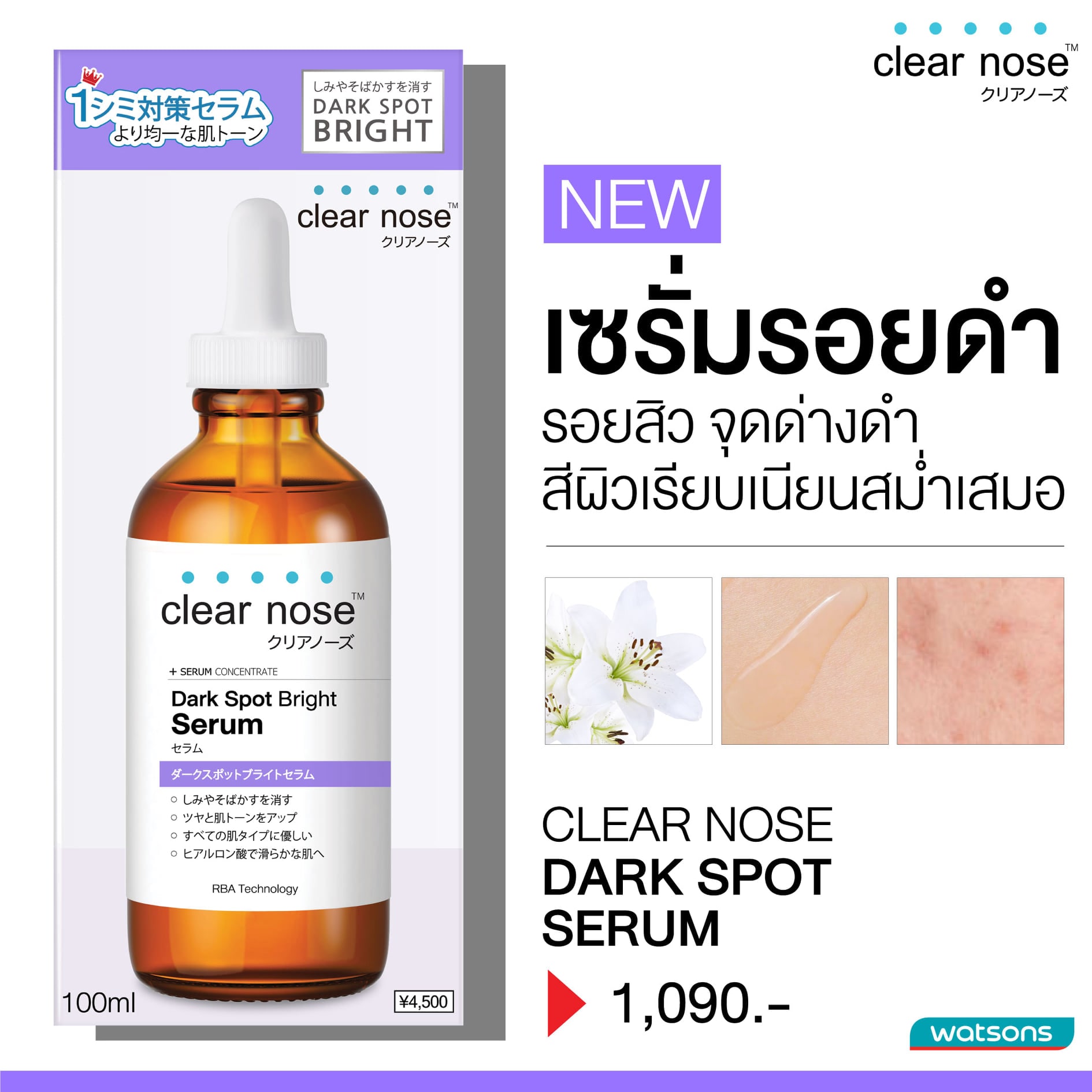 Clear Nose Dark Spot Bright Serum A fast-absorbing concentrated serum with intensive dark spot correcting powers, designed to brighten and diminish the appearance of dark spots, and even your skin tone. The multifunctional actions of effective active ingredients, perceivable as the guardians of healthy skin, potentially strengthen skin and skin barrier to their healthiest-looking level by locking the moist within your skin. This serum helps combat visible dark spots and boost radiance. Apply Clear Nose Dark Spot Bright Serum on clean skin, all over your face and neck. Gently massage on dark spots and concerned areas. Use at least twice daily or as needed. (For all skin types)