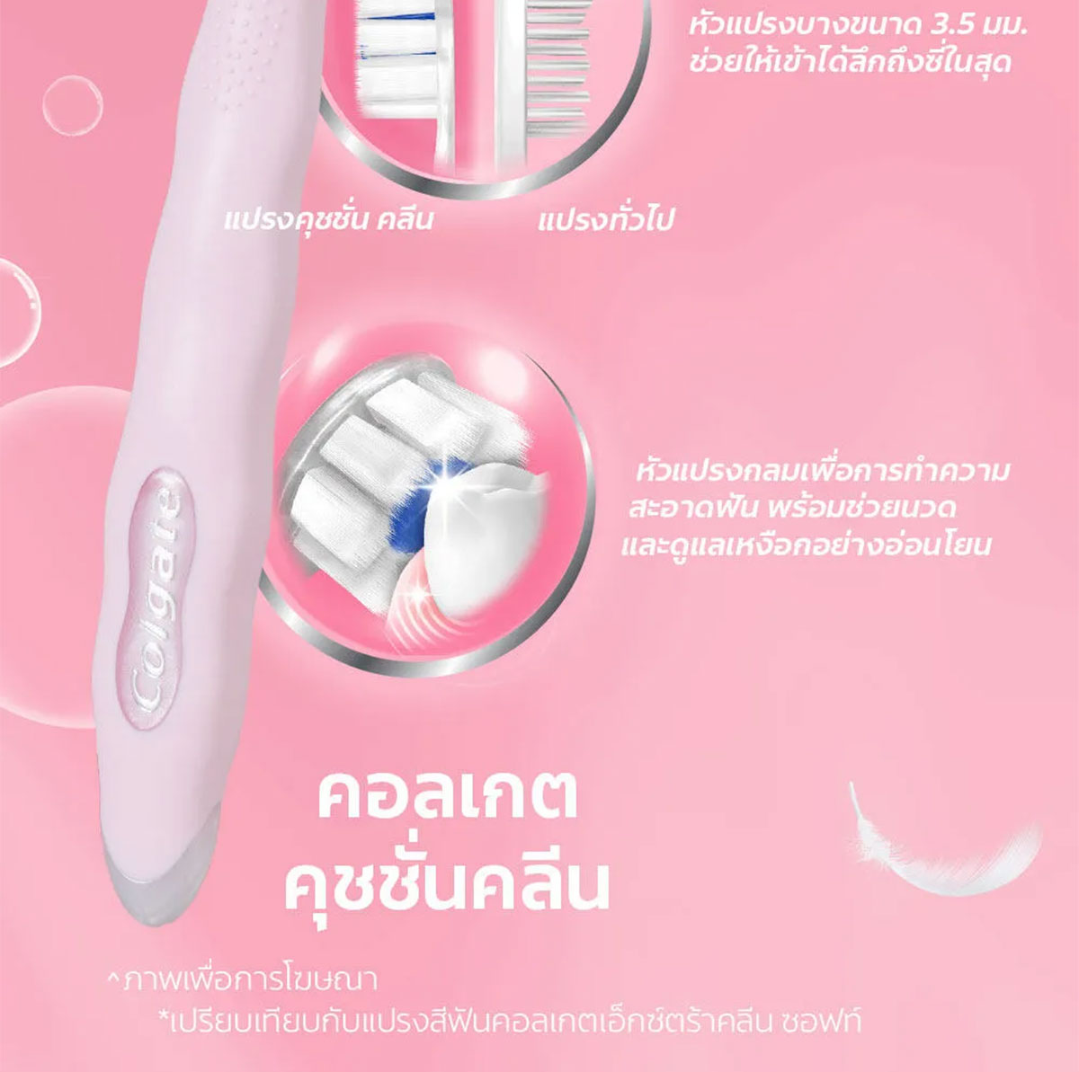 Colgate Gentle Cushion Clean Toothbrush with Super Dense Fluffy Thin Bristles for your Pleasurable Sensation- 7 Times more Tuft Density- Foamy Deep Clean- 3.5mm Thin Head for easy access to clean back teeth- Gently polishes teeth massages gumsVS Colgate Extra Clean Soft. Colgate Cushion Clean Toothbrush with Super Dense Fluffy Thin Bristles for your Pleasurable Sensation- 7 Times more Tuft Density- Foamy Deep Clean- 3.5mm Thin Head for easy access to clean back teeth- Gently polishes teeth massages gumsVS Colgate Extra Clean Soft. Dentists Hygienists recommend replacing your toothbrush every 3 months. Brush your teeth at least twice daily, 2 minutes per time. Spit out after brushing.