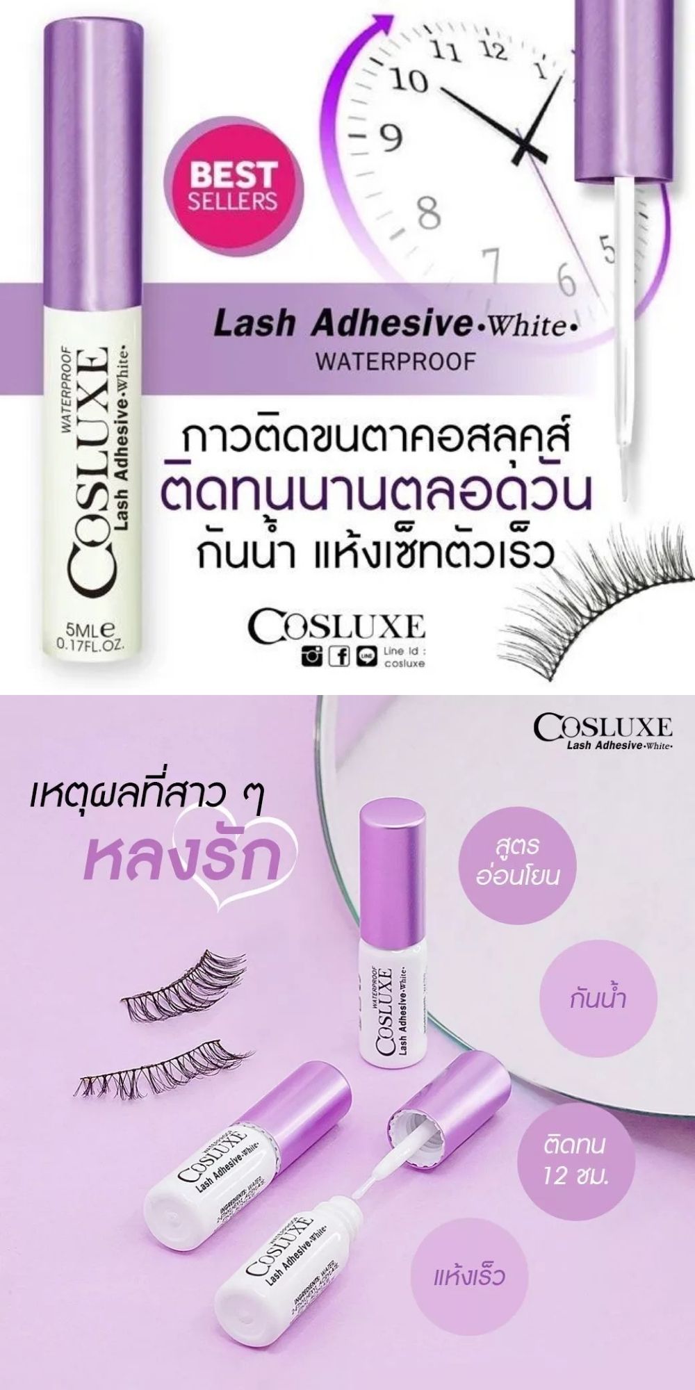 High quality Lash adhesive made in Korea, for all mild and sensitive eyes skin.Cosluxe invented with Korea laboratory for this special formula, water proof and long lasting for 12 hours. Moreover the adhesive helps to prolong your favourite lashes.