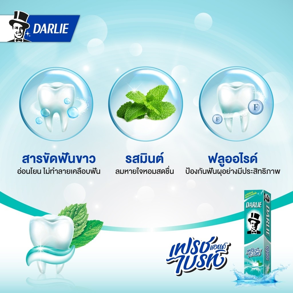 Darlie Fresh & Brite Toothpaste Darlie Fresh'n Brite, striped toothpaste combines a deep cleansing paste with a sweet mint flavoured gel. Contains gentle polishing agents. Enjoy the best of squeaky clean and fresher breath with one tube of toothpaste.
