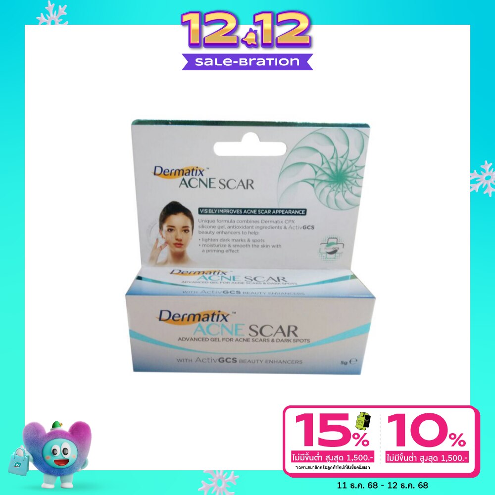 Dermatix Acne Scar 5g Helps fade dark spots and fade scars from acne. With innovation from CPX Technology and ActivGCS (snail mucus extract), Dermatix Acne Scar reduces dark spots. By slowing down the delivery of melanin to the top layer of the skin Along with reducing acne scars by preventing acne inflammation. At the same time, it stimulates the production of collagen to repair the scar area naturally.It is specifically designed to improve old and new acne scar appearance. Using Dermatix Acne Scar regularly helps to Lightens dark marks and spots.