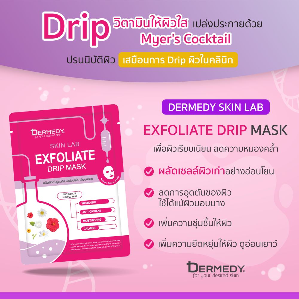 Dermedy Skin Lab Exfoliate Drip Mask 1'S มาสก์หน้า ผลัดผิว สดใส เปล่งปลั่ง เรียบเนียน