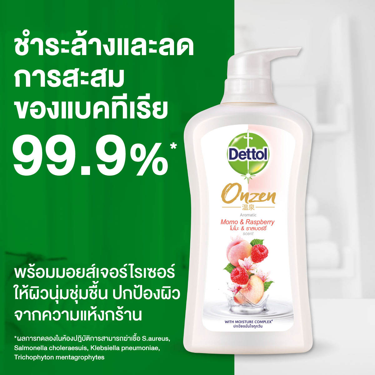 Dettol Shower Gel Onzen Aromatic Clean and reduce accumulated bacteria with freshness from rasberry fragrance. Helps wash and reduce accumulated bacteria. Antibacterial formula to protect family from harmful germs and bacterias, with moisturizer to protect your skin from dryness making it feeling healthy and relaxing. Dettol Shower Gel Onzen Aromatic contains unique formula that soothes and moisturize your skin. It combines Dettol trusted germ protection with moisturizer to protect the skin from dryness.