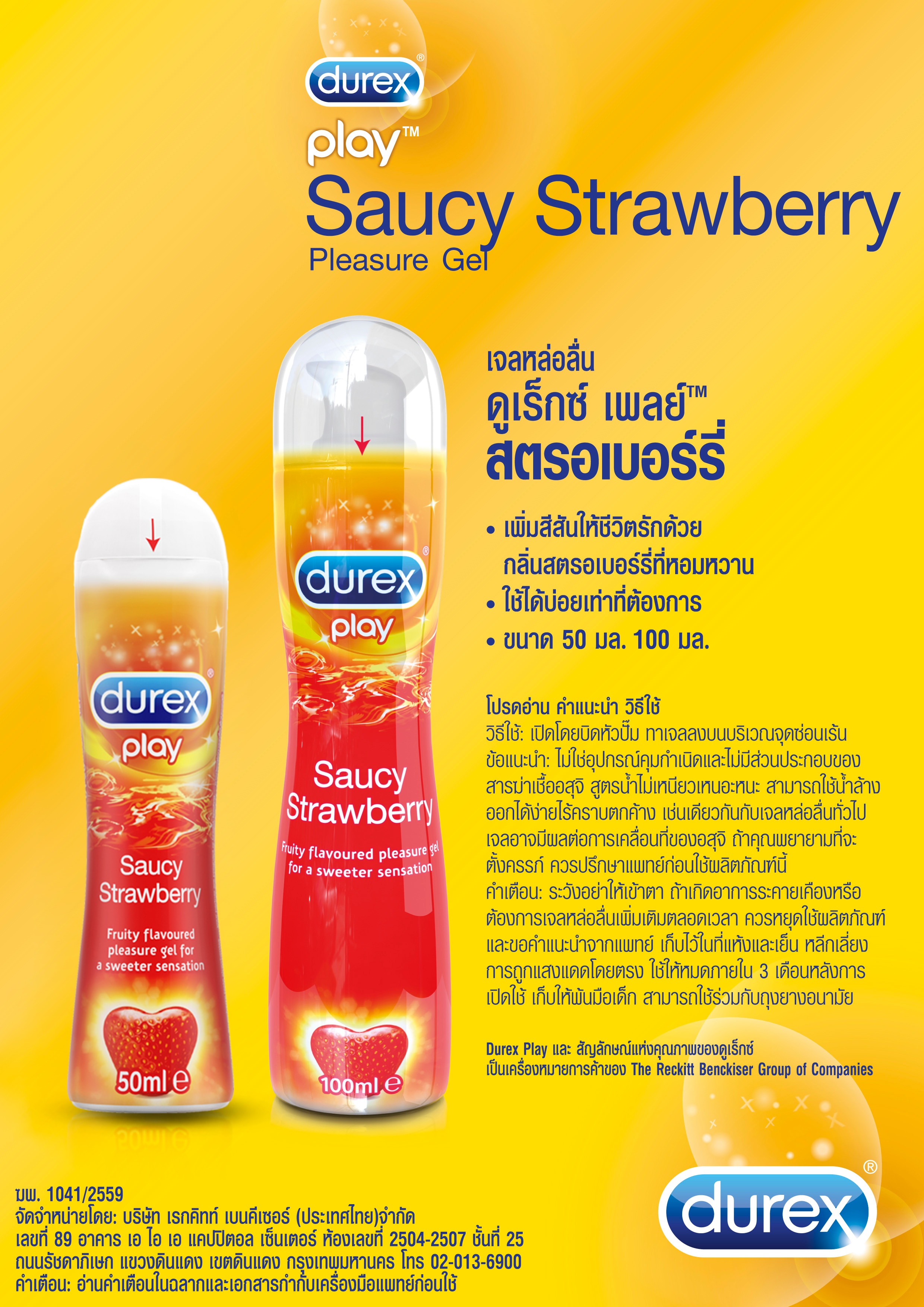 Durex Play Strawberry - Fun & fruity way to sweeten up your sex life. Enjoy both the taste and aroma of strawberries all year round for a deliciously intimate experience. Indulge as often as you wish with this sugar-free product which is suitable for both oral and vaginal sex.