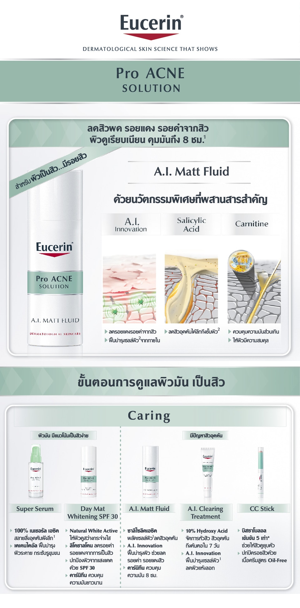 The innovative Eucerin Pro Acne Solution Matt Fluid effectively reduce acne marks & comedone