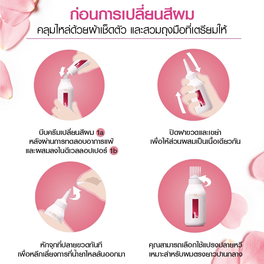 คำเตือน -ผลิตภัณฑ์เปลี่ยนสีผมอาจก่อให้เกิดการแพ้อย่างรุนแรง -ไม่ควรใช้ผลิตภัณฑ์นี้ในผู้ที่อายุต่ำกว่า 16 ปี -มีสาs Phenylenediamines