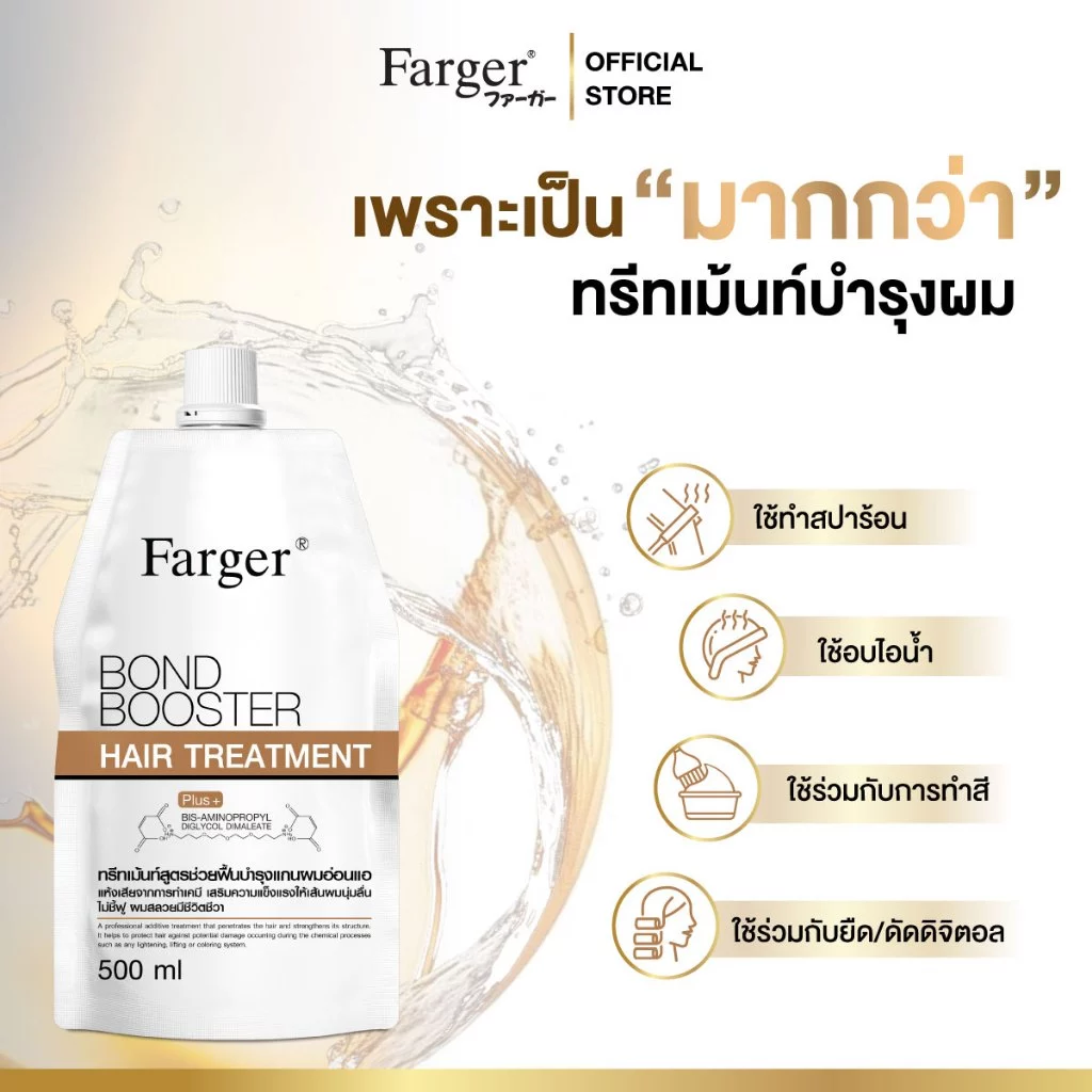 Farger Bond Booster Hair Treatment A specially formulated treatment designed to deeply nourish and repair damaged hair after chemical services such as coloring, highlighting, straightening, or perming. It works to restore the keratin structure of dry and moisture-deprived hair with Bis-Aminopropyl Diglycol Dimaleate helping to rebuild and strengthen weakened hair fibers. The result is naturally healthy, smooth, frizz-free, and revitalized hair with silky shine and bounce. treatment designed to deeply nourish and repair damaged hair after chemical services such as coloring, highlighting, straightening, or perming.