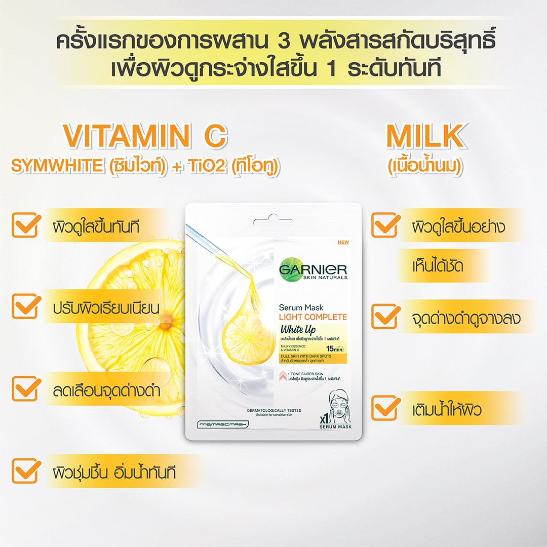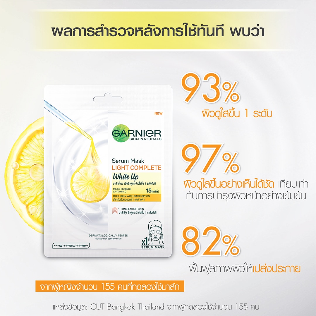 Garnier Skin Naturals Bright Complete Bright Up Serum Mask Infused with NEW milky essence and brightening Vitamin C, this mask is Garnier’s latest innovation that leaves your skin milky smoothand bright after just 15 minutes. Suitable for dull skin looking for an instant whitening boost. Designed for Asian contours, this milky mask isrecommended to be used 3 times a week.