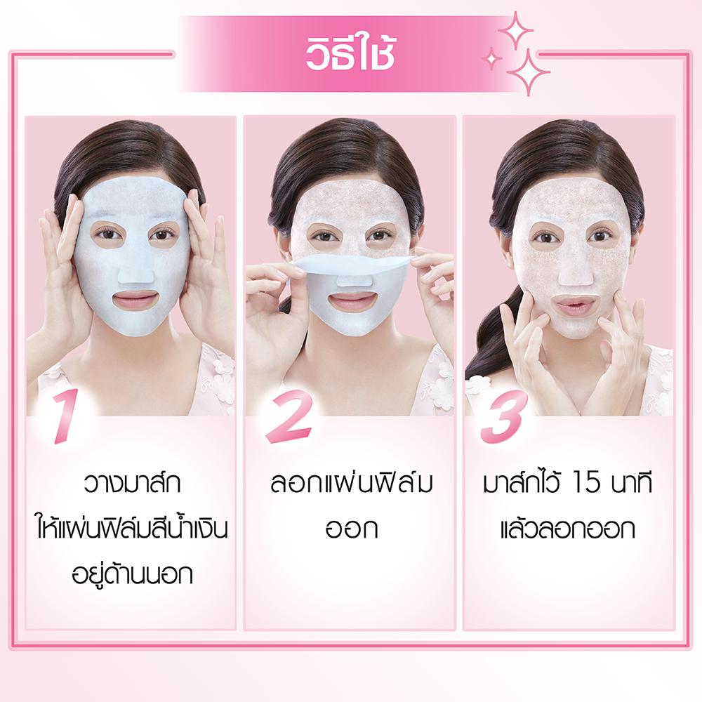 Unfold mask, Apply on clean face with the blue protective film facing outwards Remove the protective film, Adjust the mask contours on face Leave it in for 15 minute Remove mask, Gently massage in any excess serum, or use cotton pad to remove strongWorks well with