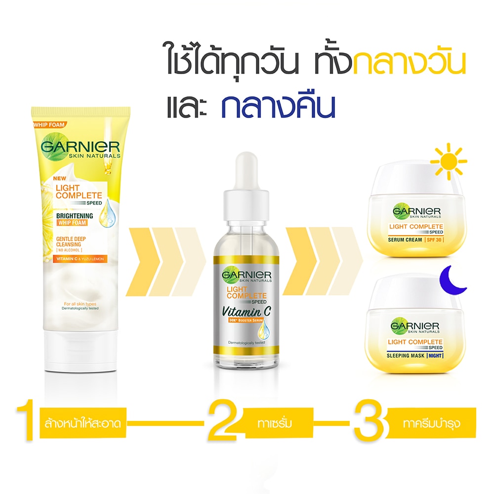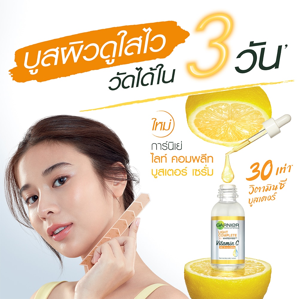 Garnier Ligth Complete Booster Serum With the highest ever 30X* Vitamin C & Japanese Yuzu Lemon.This fast absorbing essence works deep** to lighten dark spots&acne marks