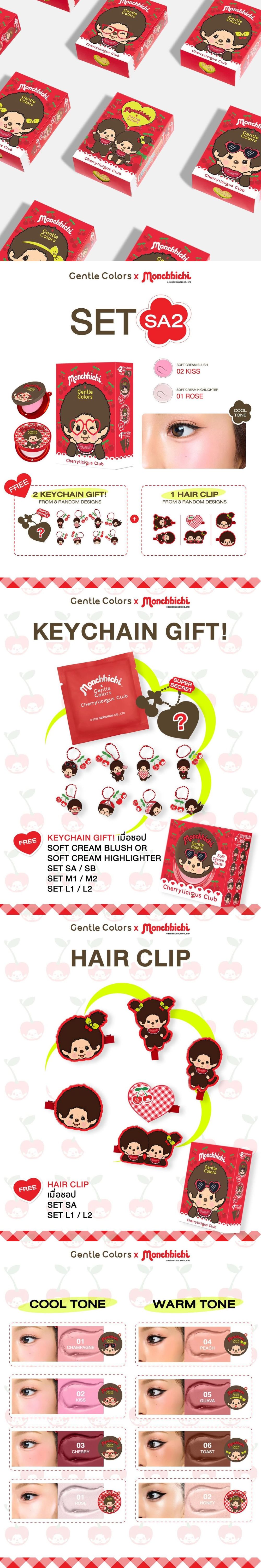 Gentle Color Monchichi Set SA2 includes Gentle Color Soft Cream Blush and Gentle Color Soft Cream Highlighter. This lightweight cream blush is easy to blend and blends naturally, giving cheeks a healthy glow with Velvet Fix technology that blurs the complexion for a smooth, beautiful complexion. The color is vivid and blends smoothly. This soft, creamy highlighter provides a natural glow, helping to make your face stand out and shine naturally. The light cream texture is easy to blend and blends smoothly into the skin. The long-lasting, non-sticky formula helps skin look bright, moisturized, and healthy.