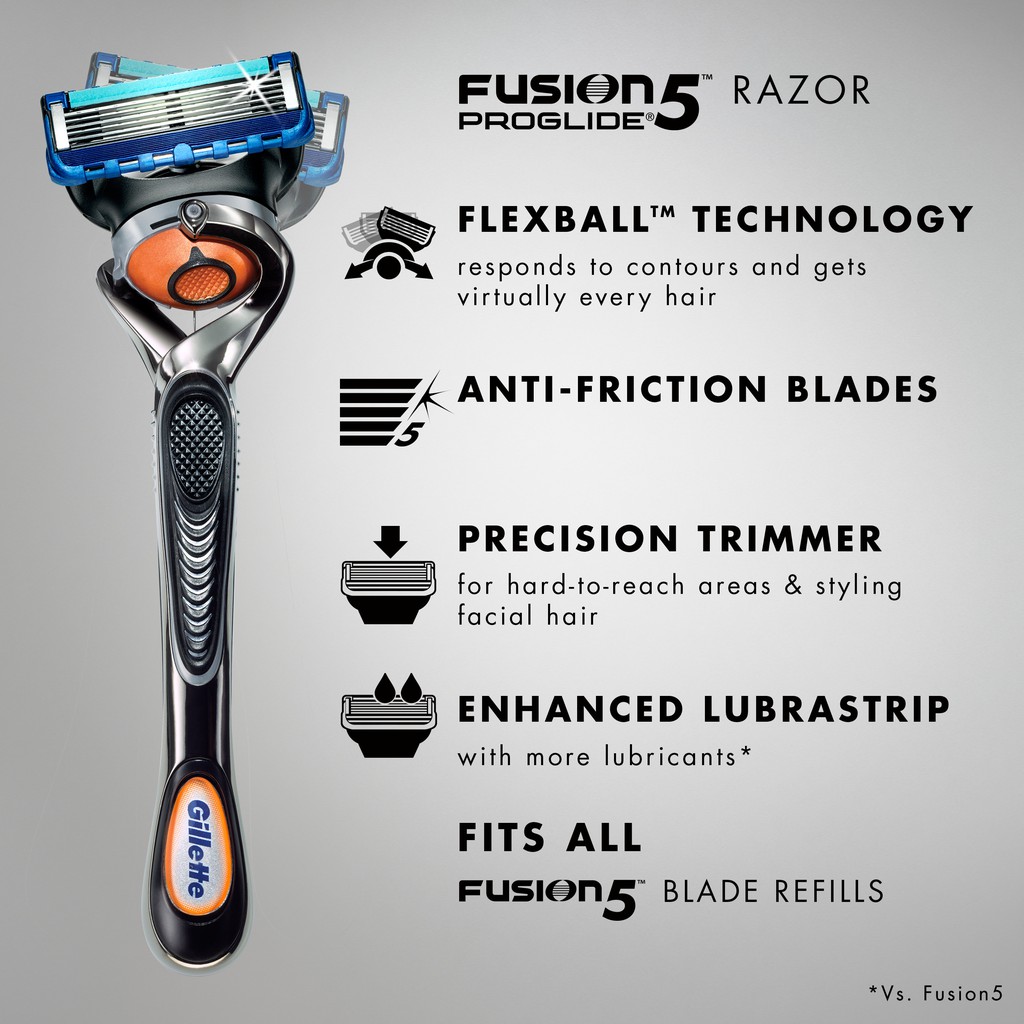 Gillette Fusion ProGlide Power razor blades are Gillette’s #1 on sensitive skin. Reengineered Low Cutting Force Blades feature thinner, finer edges (first 4 blades vs. Fusion) with advanced low-resistance coating to cut effortlessly through hair with less tug and pull than Fusion. The razor’s Enhanced Lubrastrip (vs. Fusion) is infused with mineral oil and lubricating polymers that allow the Gillette Fusion ProGlide to move smoothly over skin, even on repeat strokes.