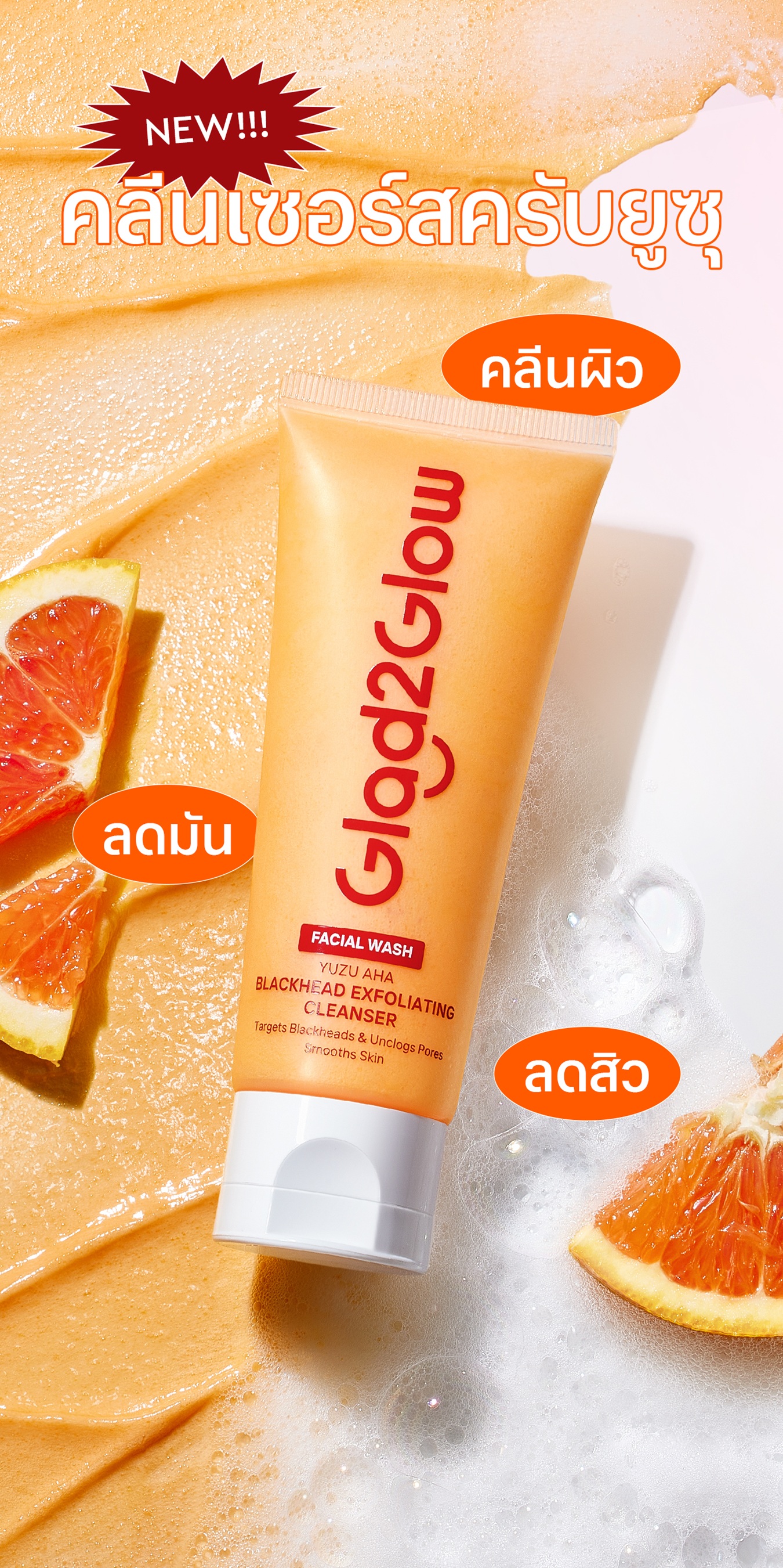 Glad2Glow Cleanser Yuzu AHA Blackhead Exfoliating 70 Ml.