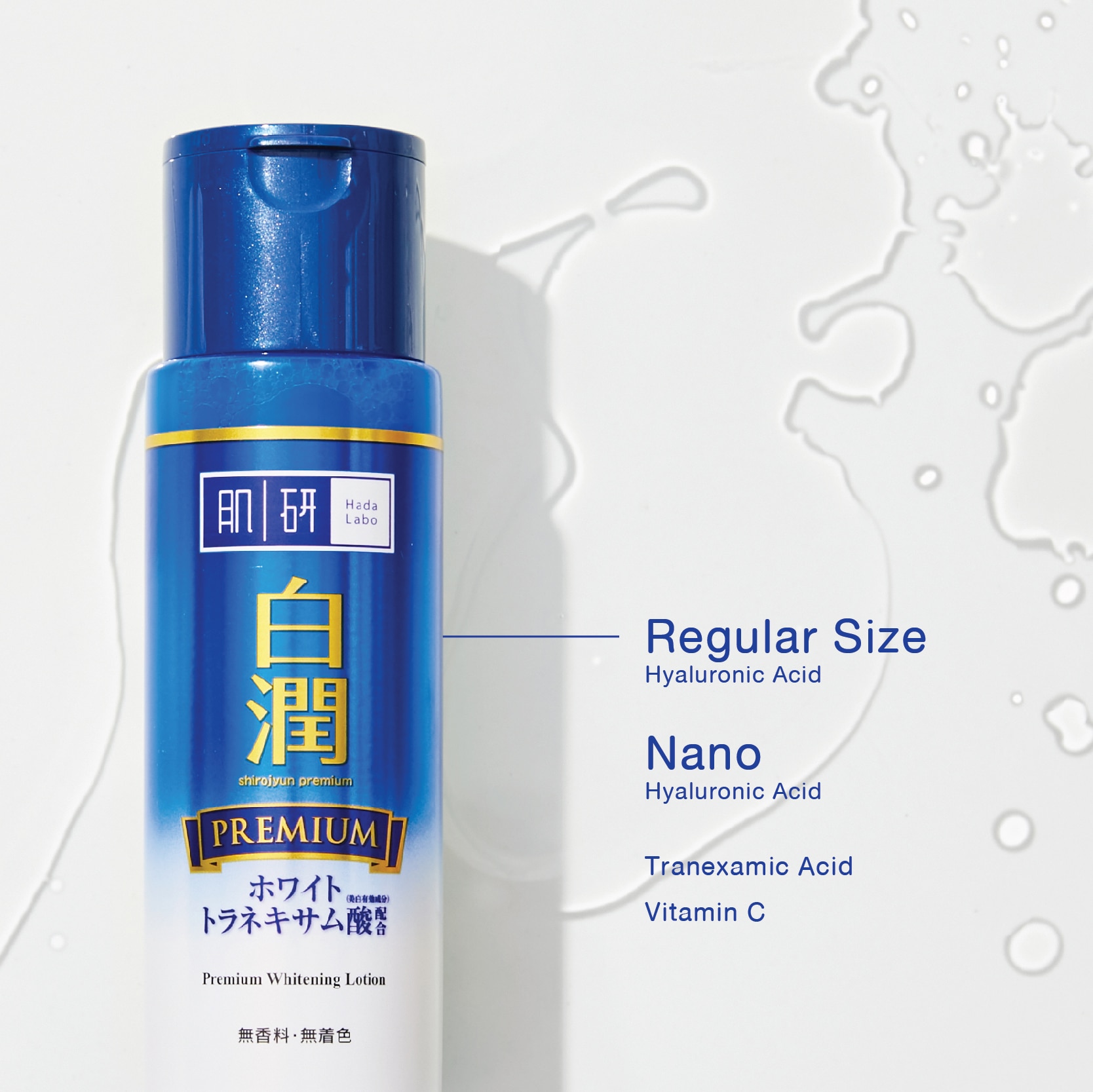 Hada Labo Premium Whitening Lotion Light Facial patting lotion for Whitening Formulated with the newest formula, actively infuse the special combination to help reduce dullness, hydrated and make skin smooth and become supple. - Niacinamide, a-Arbutin, Vitamin C With Triple Brightening Formula to end dull skin, prevents the cause of dark spots within skin layer for brightening and spotless skin. - Small-size Hyaluronic Acid, Nano Hyaluronic Acid Provide a moisture-locking shield and penetrate deep into skin to provide moisture deep down into inner skin layers. Let the skin to be firm and fuller from moisture within, skin will be hydrated and smooth. - Resveratrol Anti-oxidant, decrease dull skin, protects skin from damage and keep it healthy. Light texture lotion, easily absorb, suitable for every skin types. - Mild formula. No alcohol, mineral Oil, fragrance, colorant and paraben. Patting lotion to end dull skin Use as 1st step to prepare skin before applying other skin care products.