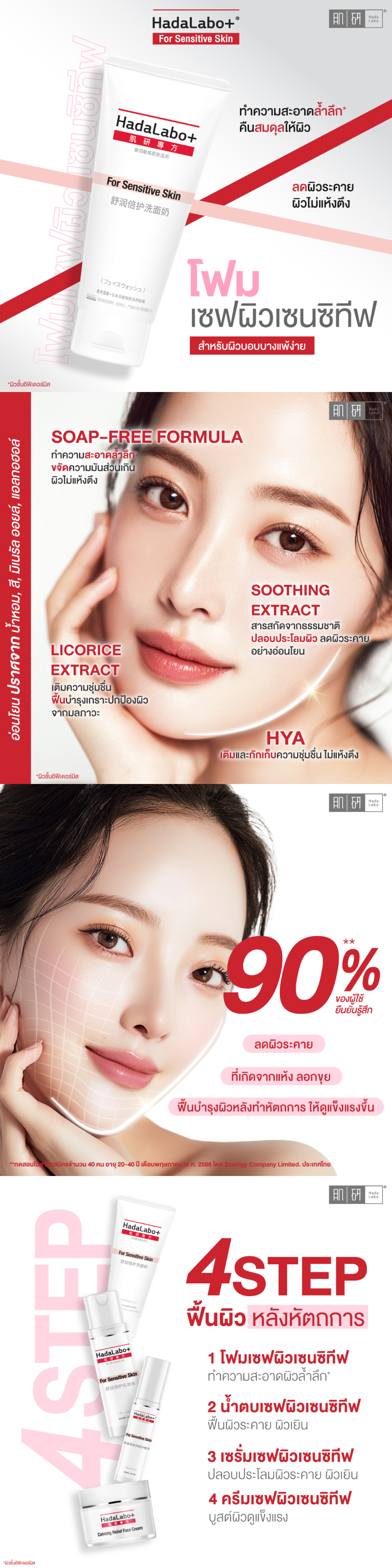 Hada Labo plus Facial Skincare for Sensitive Skin Specially formulated for sensitive skin Combines soothing ingredients to strengthen hydrate and calm the skin while reinforcing its protective barrier against pollution Hada Labo plus Sensitive Skin Hydrating Creamy Wash Gentle Cleansing Gently cleanses without drying out the skin Nourishes Repairs Infused with natural extracts to reduce irritation and strengthen the skin barrier Deeply Hydrates HYA provides deep hydration and locks in moisture restoring suppleness Gentle free from colorants alcohol fragrance and mineral oil