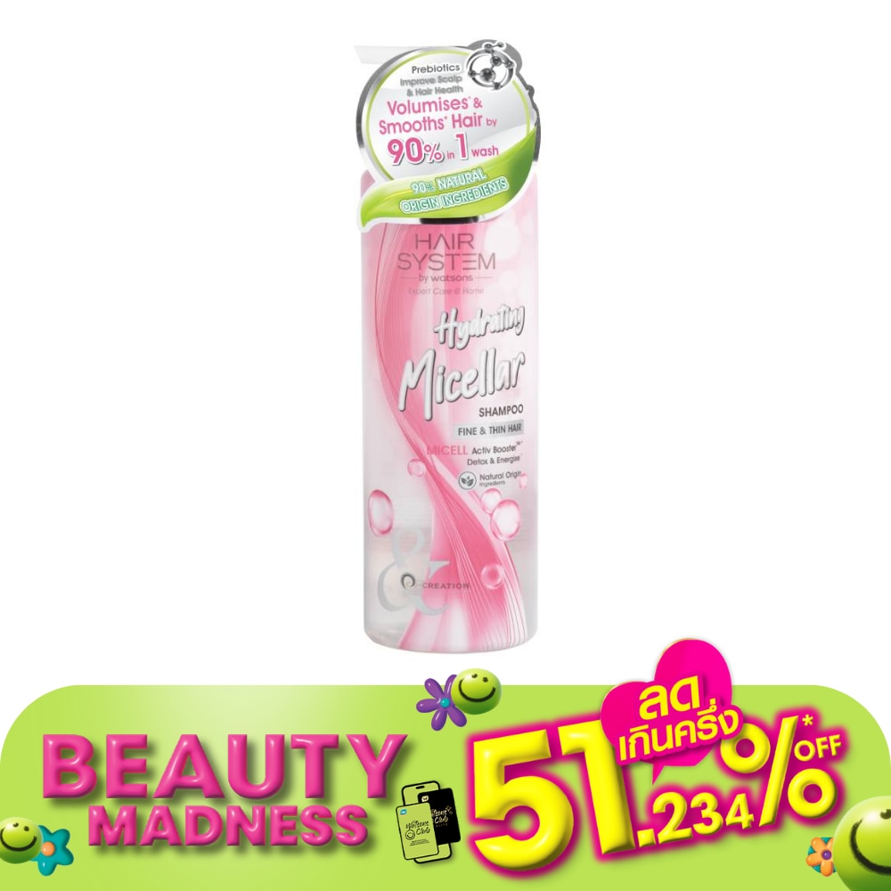 Hair System by Watsons Micellar Botanical Hydrating Rose Water Shampoo is infused with mild micelles paired with French Rose Water Extracts to gently cleanse and soothe dry and under-moisturised hair without leaving it feeling stripped. It is rich in antioxidants that replenish moisture to soften hair and leave your locks healthy and naturally refreshed. ""refers to purifying, clarifying, deep cleansing and hydrating.Apply an appropriate amount of shampoo to wet hair and work into a lather. Rinse thoroughly. For best results, follow with Hair System by Watsons Micellar Botanical Hydrating Conditioner.