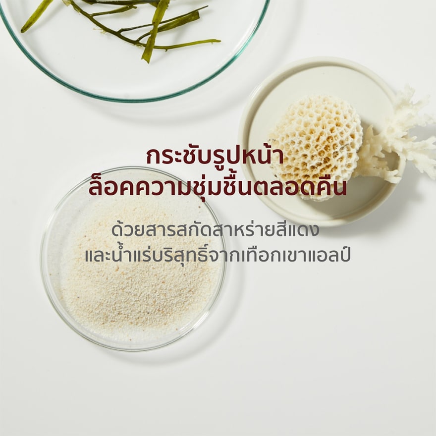Strengthen skin’s foundation & skin’s barrier • Firm & lift sagging skin • Tighten pores • Boost skin’s natural radiance • 24-hour hydration This royal jelly and marine fossil sleeping mask is specially concentrated for night. it works miraculously while you sleep leaving your skin feeling firmer, brighter, and significantly more hydrated. Strengthen Skin's Foundation from within, Royal Jelly 95% Concentration: • Boost skin’s natural collagen production by 2X • Promotes new healthy cell growth Firm & lift + intense hydration Marine fossil : • Increase energy for skin cell to reinforce skin’s structure for stronger facial adhesion. • Skin feels firmer and looks more lifted. • Lines are reduced. • Stimulate production of important protein, filaggrin, to strengthen skin’s barrier • Lock moisture • Increase ceramide production for stronger and ultra-hydrated radiant skin Swiss glacier water: • Provide 24-hour refreshing hydration Gel cream texture Suitable for sensitive skin Non-Comedogenic.