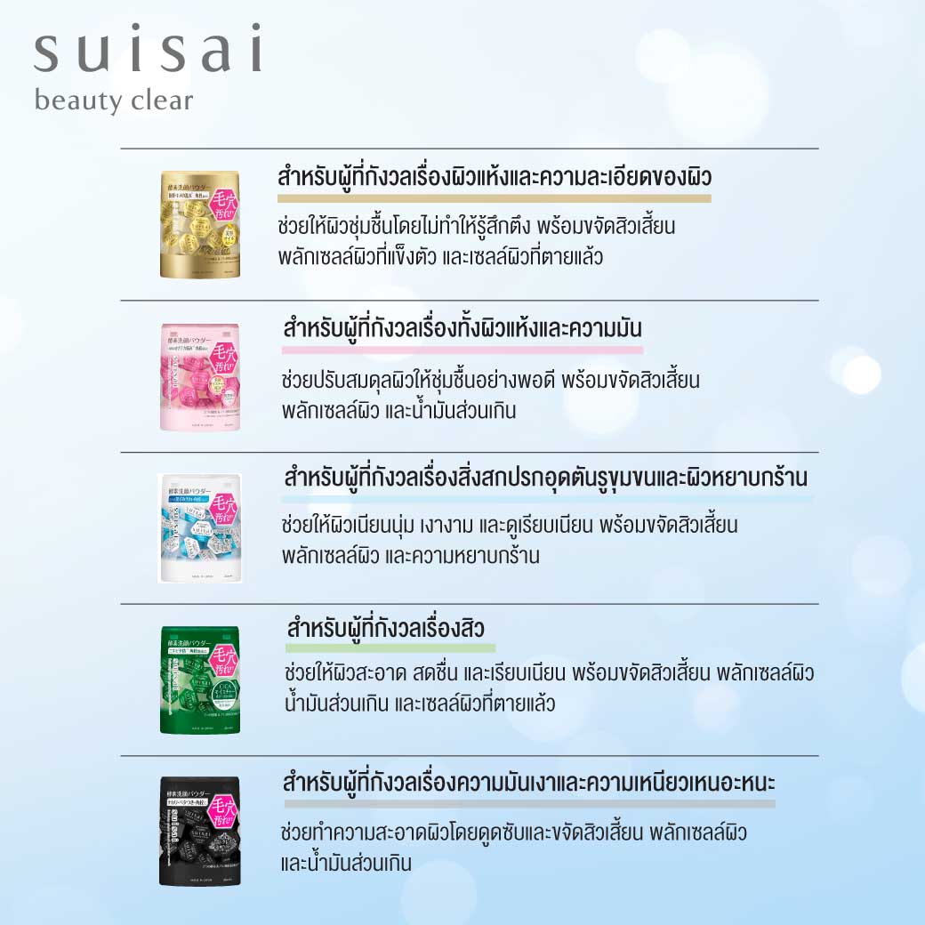 Suisai Beauty Clear Green Powder Wash 15 Capsules Deep Pore Cleansing Enzyme Powder For Refreshed Smooth Skin. A Gentle Yet Powerful Enzyme-Infused Powder Wash Designed To Remove Impurities, Blackheads, And Keratotic Plugs While Refining Skin Texture. The Ultra Fine Lather Deeply Cleanses Without Stripping Moisture, Leaving Skin Feeling Fresh And Balanced. Triple Action Cleansing For Clearer Skin. Enzyme Formula Breaks Down Excess Sebum And Dead Skin Cells. Stratum Corneum Removing Powder Gently Exfoliates Clogged Pores. Ultra-Fine Particles Reach Deep Into Pores, Preventing Acne Formation. Light, Airy Lather For A Smooth Finish. Create A Fine, Fluffy Foam That Spread Evenly For Thorough Cleansing. Leaves Skin Soft, Smooth, And Prepped For Better Lotion Absorption. Convenient Capsule Packaging. Hygienic, Pre-Measured Portions For Easy Use Anytime, Anywhere. Protects Enzymes From Humidity, Ensuring Maximum Effectiveness.