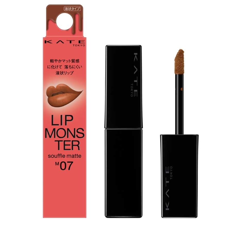 Kate Monster Souffle Lip Matte M07 (Burned Toast's Fate) 7 g. The monster is fluffy and matte. A just- applied fresh look that lasts for many hours. From the long-lasting lipstick series LIP MONSTER comes a souffle type lipstick with fluffy and matte finish. does not easily transfer even under a face mask, Dose not easily transfer to glass after drinking. Resistant to dryness. Product features. A vivid coloration souffle formula that creates a long-lasting soft finish. An airy soft matte finish that blurs the outline of the lips. Retains the existing functions of KATE LIP MONSTER: A just-applied fresh look that lasts for many hours, does not easily transfer even under a face mask, Dose not easily transfer to glass after drinking