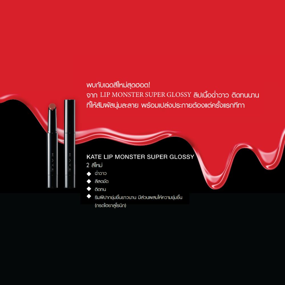 Kate Lip Monster Super Glossy G05 Pink Robin Fountain 1.6 G. An Unknown Monster Attacks. This Is Melty Gloss. It Comes From Beyond Our World To Satisfy Our Insatiable Desires. And No One Can Escape Its Melty Clutches. Kate Lip Monster Super Glossy Melts And Bursts With Gloss In One Swipe. Introducing A New Addition To The Long Lasting Lip Monster Series A Melting Glossy Monster. Clear And Intense Coloration. They Provide The Dewiness Of A Liquid And The Smoothness Of A Balm. It Delivers Both Long Lasting Color And High Gloss. Adhesive Gel Film That Ensures Long Lasting Color Evolved Into A Melting Glossy Gel Film That Has The Softest Texture In The Lip Monster Lipstick Series. Melts And Spreads A Thick Gloss And Also Corrects For Vertical Wrinkles. Long Lasting And Does Not Dry. Product Features. Melting Gloss Vivid Coloration Long Lasting Keeps Lips Moisturized Contains Moisturizing Ingredients (Hyaluronic Acid) Twist The Rear Of The Container And Expose About 1Mm Of The Product. The Core Does Not Go Back In Once It Is Rolled Out.