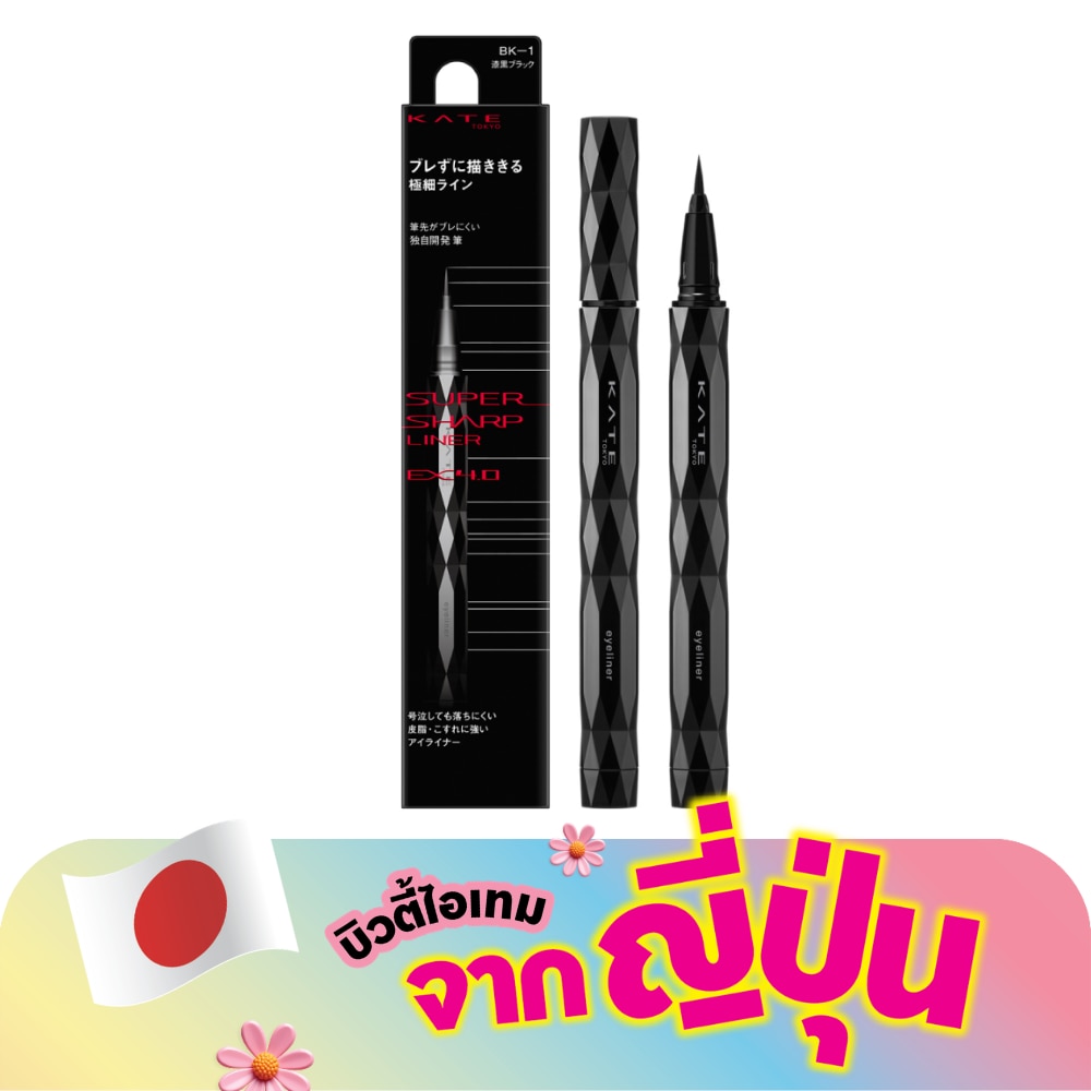 Kate Super Sharp LinerEX4.0 BK-1. 0.5 Ml. Unshakable and spider-fine. Steady, ultra fine lines are yours forever with our advanced brush. Get the Killer line you.ve always wanted with new SUPER SHARP LINER EX4.0. Compared to SUPER SHARP LINER EX3.0. Line tends to get thicker under the strong pressure with long brushes. With a 7.85 mm length brush. sharper, thinner line is achievable. Mixed bristles exclusive to KATE. Attention paid to the kind of fibers and the composition ratios. Adds firmness for greater control over drawing lines. Higher capillary action, resulting in increased capacity to pass and hold the liquid. Product Features. Waterproof formula resistant to sweat, water and tears. Smudge-Proof formula resistant to sebum and friction. Comes off with warm water. Color that lasts all day long