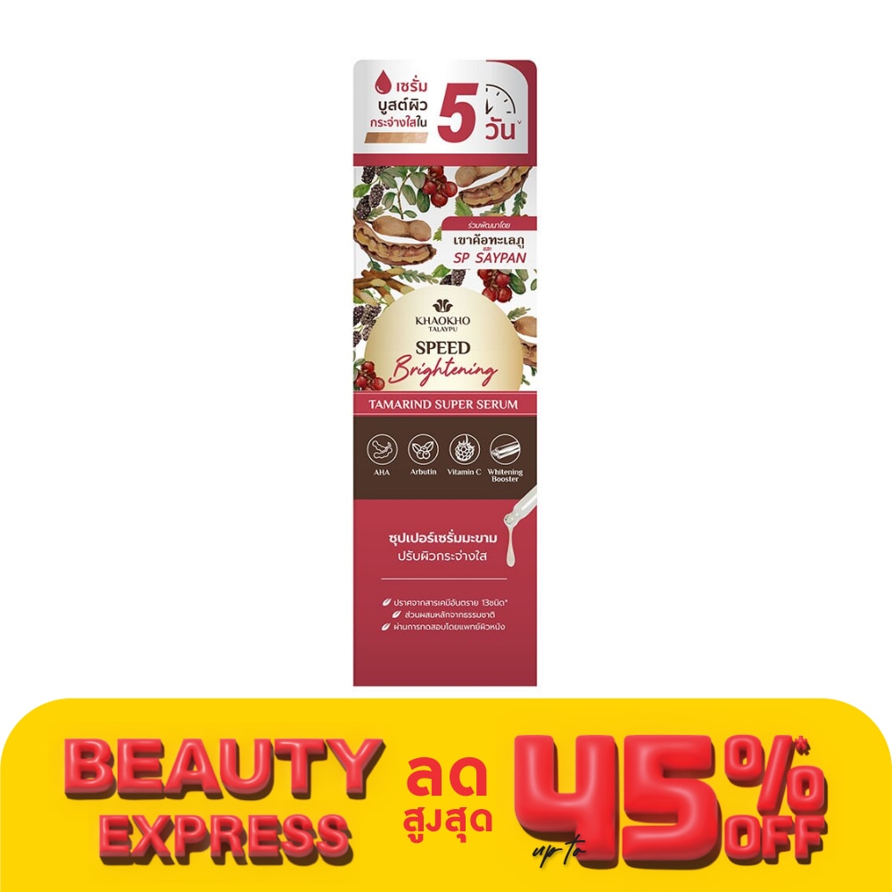Khaokho Tamarind Super Serum Designed for Speed Brightening skin Khaokho s unique Face Serum combines AHA from Tamarind plus with Natural Arbutin from Bearberry, Vitamin C from Mulberry and Whitening Booster from Licorice to reduce melanin production. Fast absorb to directly target uneven skin tone for clarifing and brighten your skin Dermatologically Tested. Fit with all Skin types. Product Selling Point 1.Intensive Serum in light texture 2. Natural AHA from Tamarind 3. Natural Arbutin form Bearberry 4. Vitamin C from Mulberry 5. Whitening booster form Thanaka No Silicone Free from 12 Harmful chemicals Natural Active Ingredients Dermatologically tested Cruelty Free.