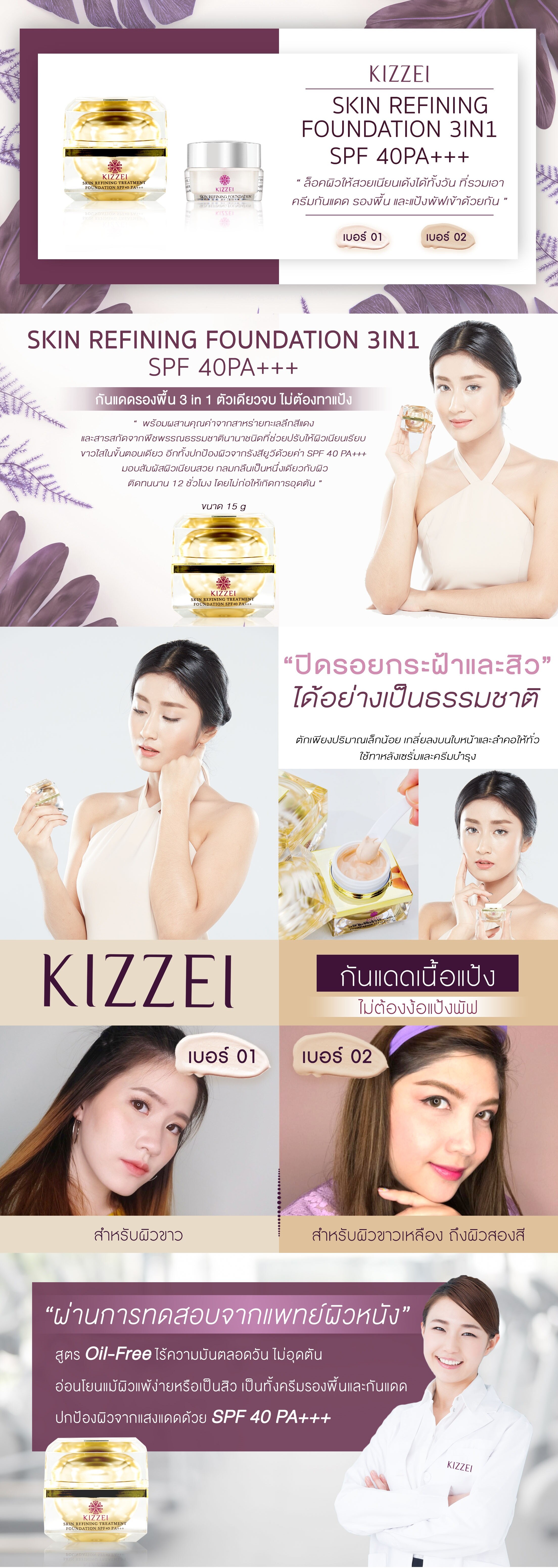 A unique, 3-in-1 foundation delivers a balanced complexion that glows with vitality and radiance. Extremely lightweight and luminous, it helps protect skin and promote vibrancy. Kizzei’s exclusive Light-Reflecting Technology และ 3-Dimentional pigments deliver seamless and undetectable coverage that's easy to build up or sheer down, without blocking pores