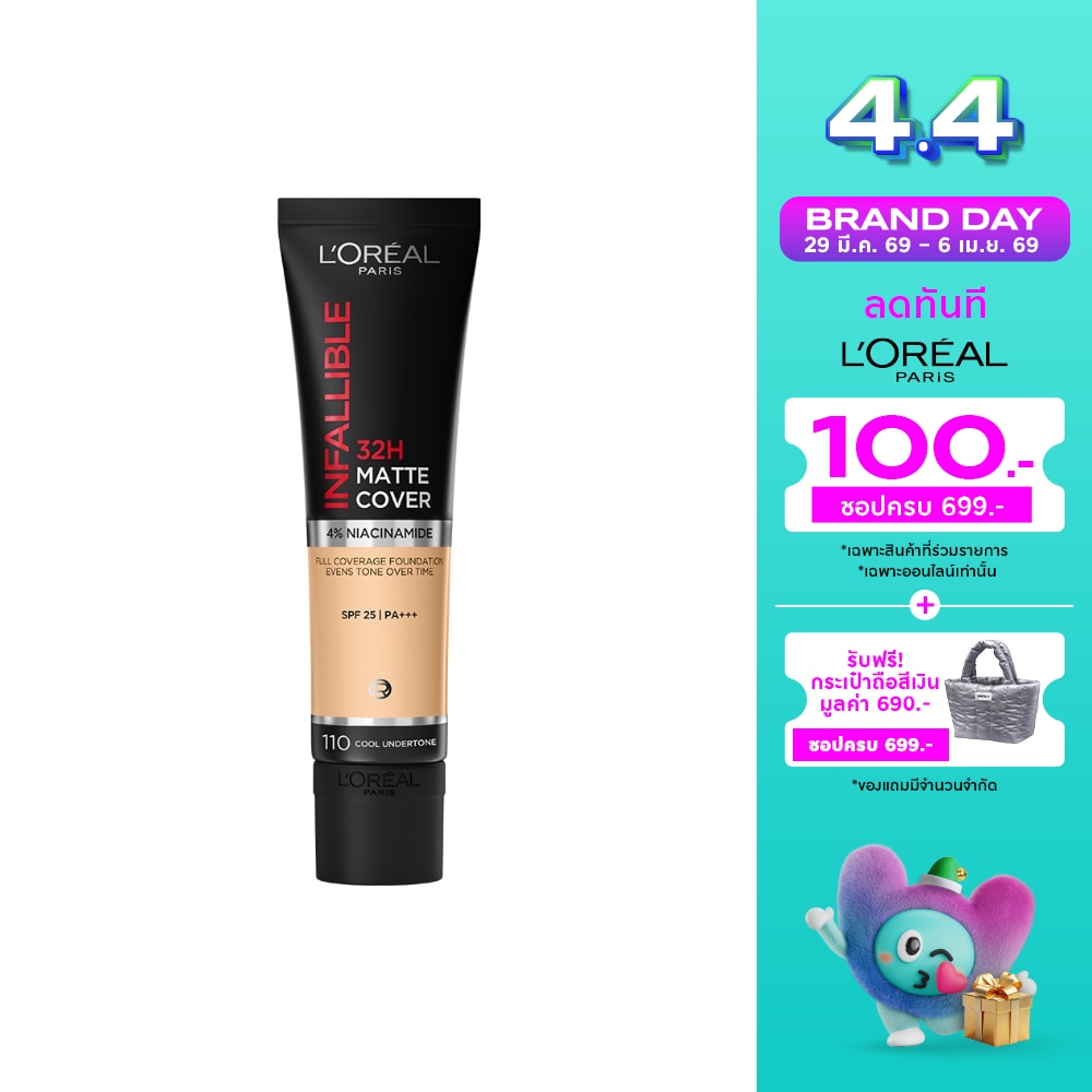 High-coverage foundation is an essential for concealing skin imperfections, yet this type of makeup can exacerbate the same skin issues that are hiding underneath. Enough with clogged pores and suffocated skin. Its time to break the anti-beauty cycle. Introducing LOreal Paris Infallible 32H Matte Cover Foundation with 4 Niacinamide for full matte coverage that works with skin, not against it. A Flawless Complexion Powered by Niacinamide With a highly pigmented formula, the LOreal Paris Infallible 32H Matte Cover Foundation, infused with 4 Niacinamide, offers maximum matte coverage all day long. This foundation provides flawless coverage for every skin imperfection: acne marks, hyperpigmentation, redness, and oily skin. Suitable for every skin tone and type, the Infallible 32H Matte Covers fine film maintains coverage while being transfer-proof and shine-proof. Yet its benefits dont stop there. Alongside the foundations matte coverage, its 4 concentration of Niacinamide.