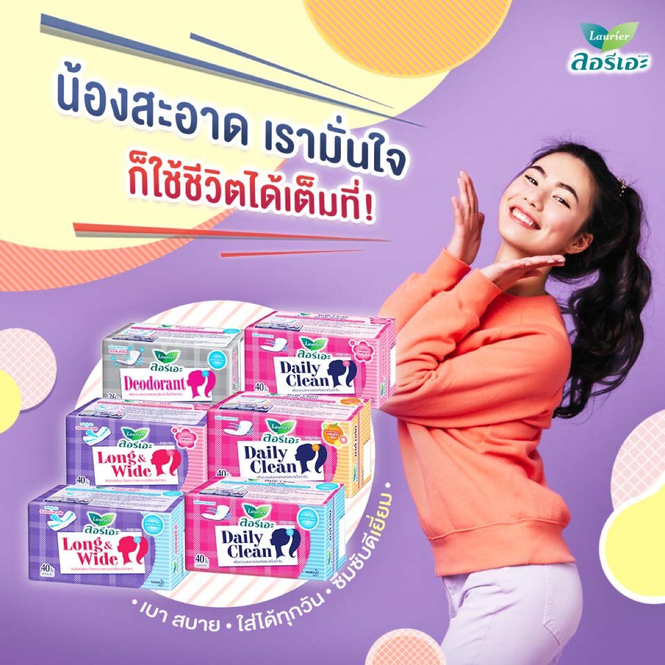 Laurier Daily Active AG Silver. Reduce stuffness and odor problem that caused by bacteria. Fit to body with Body Curve shape for active movement. Super Breathable back sheet, reduce stuffiness. Confident, not sliding with strong adhesive tape.