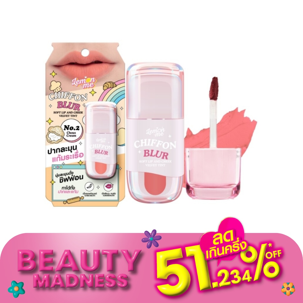 Lemon Me Chiffon Blur Soft Lip And Cheek Velvet Tint Matte Tint Lipstick, Light, Soft And Smooth Like Chiffon. Can Be Applied To The Lips And Cheeks, The Pigments Are Sharp, Blurring The Lines Of The Mouth, Completely Smooth. Light Texture, Weightless. Comfortable In Your Mouth All Day. Lemon Me Chiffon Blur Soft Lip And Cheek Velvet Tint 9 Colors - No.1.Cutie Pie No.2 Choux Cream No.3 Strawberry Yogurt No.4 Sweet Peach Icing No.5 Love Pudding No.6 Mixed Berry No.7 Red Velvet No.8 Mulffin Almond No.9 Bubble Gum