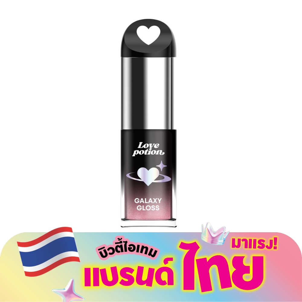 Love Potion Galaxy Gloss Aurora Glaze 3gram. Galaxy of love, a glossy lip oil with intense pigments and clear color, adds moisture and instantly enhances your look. With nourishment from HYAENCAPSULATION, a special technology that helps fill in deep lines in the lips and locks in long-lasting moisture with ingredients from GRAPE SEED OIL, Jojoba Oil, and Sunflower Seed Oil, it reduces dryness and helps restore lips from pollution. Contains VITAMIN C and VITAMIN E to protect the lips and provide moisture.