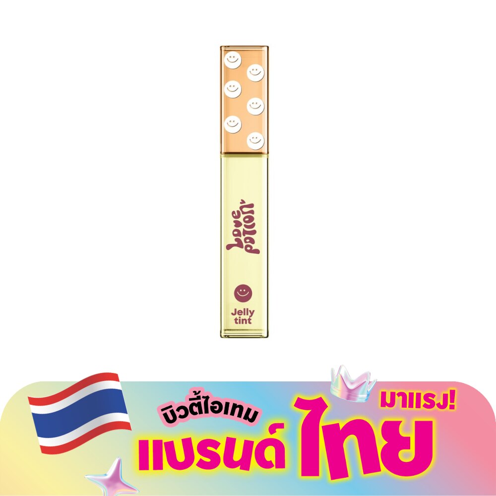 Love Potion Jelly Joy Tint Net weight 2.5 g. Jelly lip tint with soft jelly texture, light but moist, giving plump, juicy lips, clear, long-lasting color, not sticky. With lip nourishment with Ceramide, vitamins and 8 types of Hyaluronic, giving lips soft, smooth, plump and healthy. There are 9 shades to choose from, selected for their beautiful and bright colors: 01 Pinky Pop 02 Candy Kiss 03 Biscuit Cup 04 Rosewood Card 05 Berry Rush 06 Red Rum 07 Cherry Rocket 08 Ruby Roll 09 Toffee Nut Bright, clear color all day long. Comfortable on the lips, not dry, not tight, does not fall into the groove, covers dark lips perfectly.
